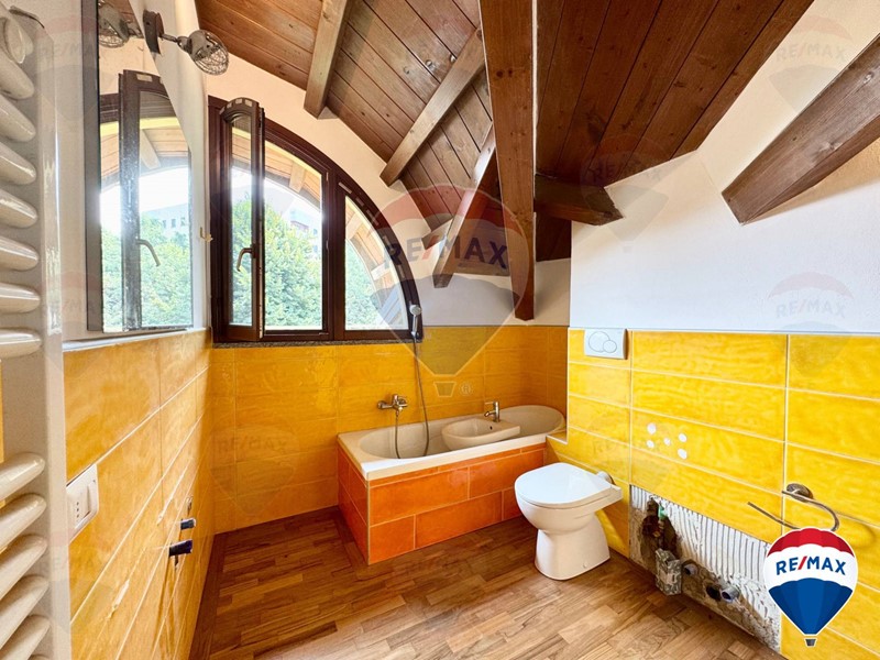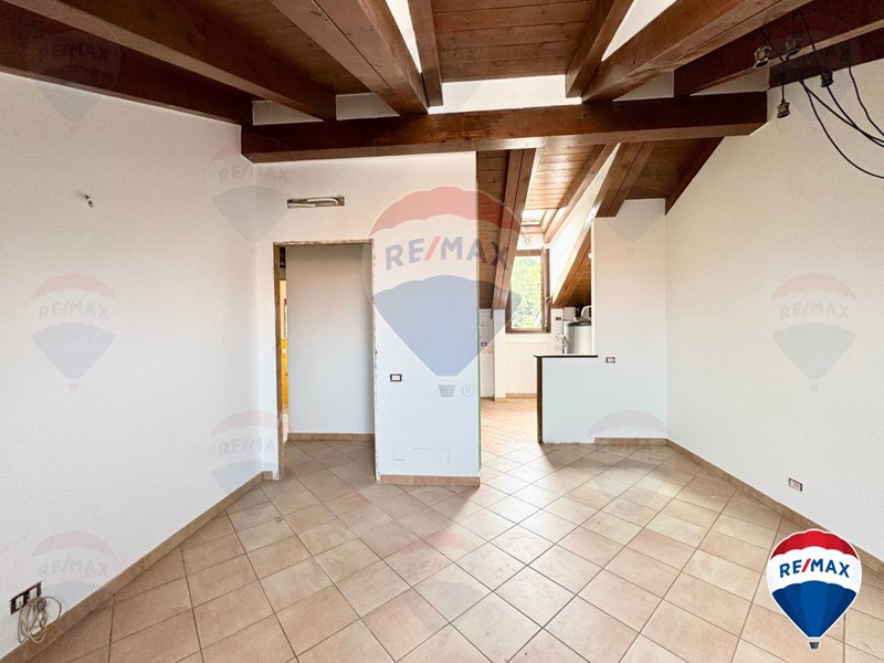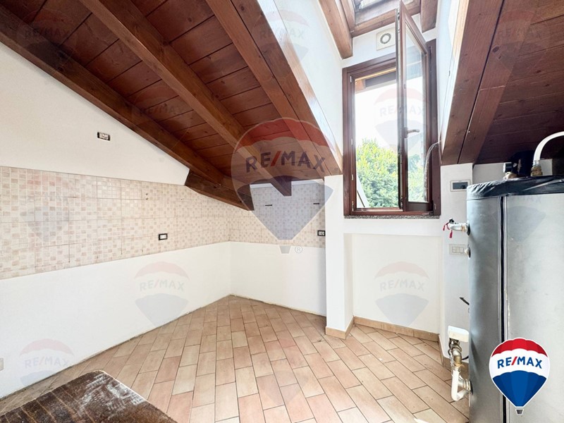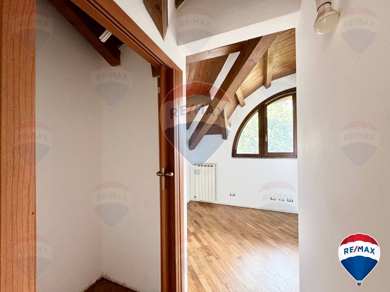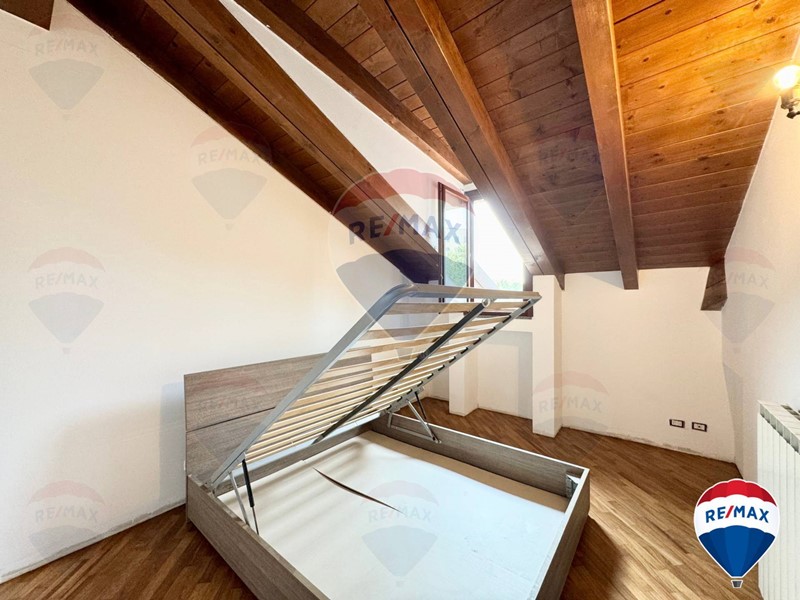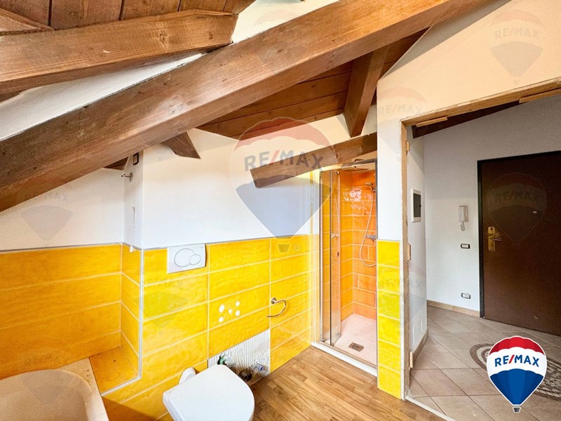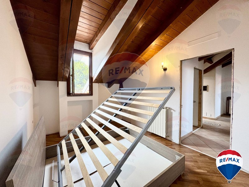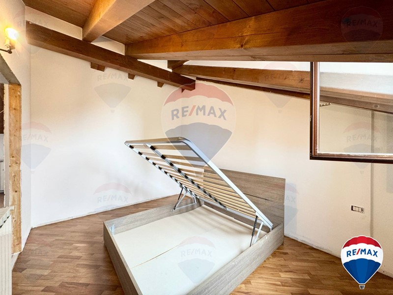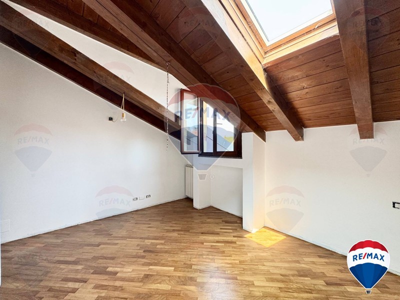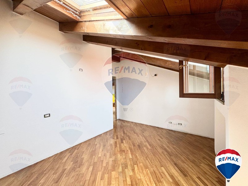 L'attico/mansarda si presenta in ottime condizioni, appena imbiancato e con parquet lamato ed un soffitto in travi a vista perfettamente tenute.