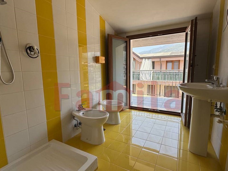 L'appartamento, leggermente mansardato, è composto da soggiorno all'ingresso, cucina abitabile, due camere da letto e due bagni con doccia.