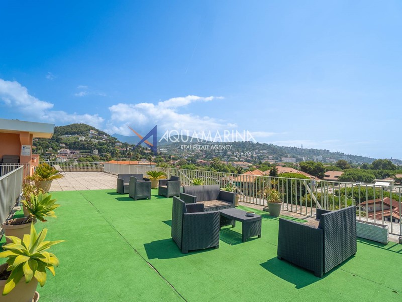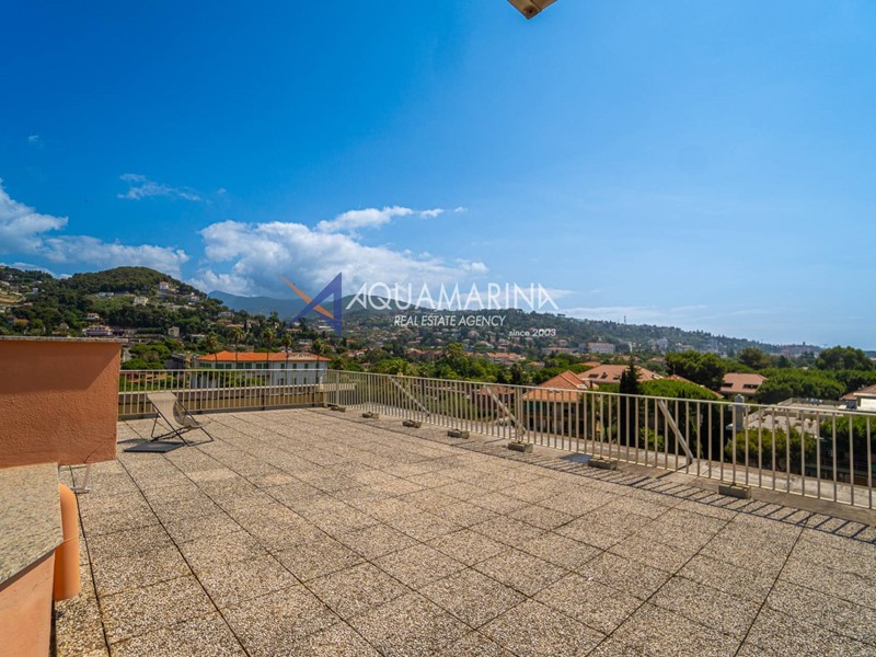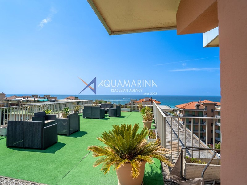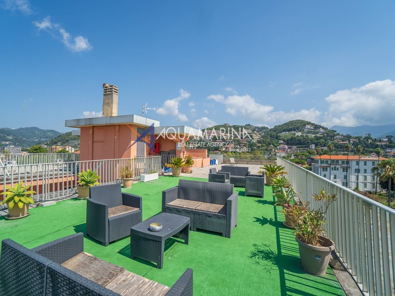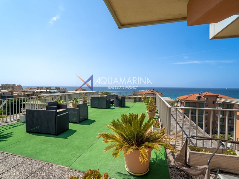 Completa la proprietà un meraviglioso solarium condominiale, attrezzato con salottino e affacciato su una vista mare mozzafiato, ideale per momenti di relax.