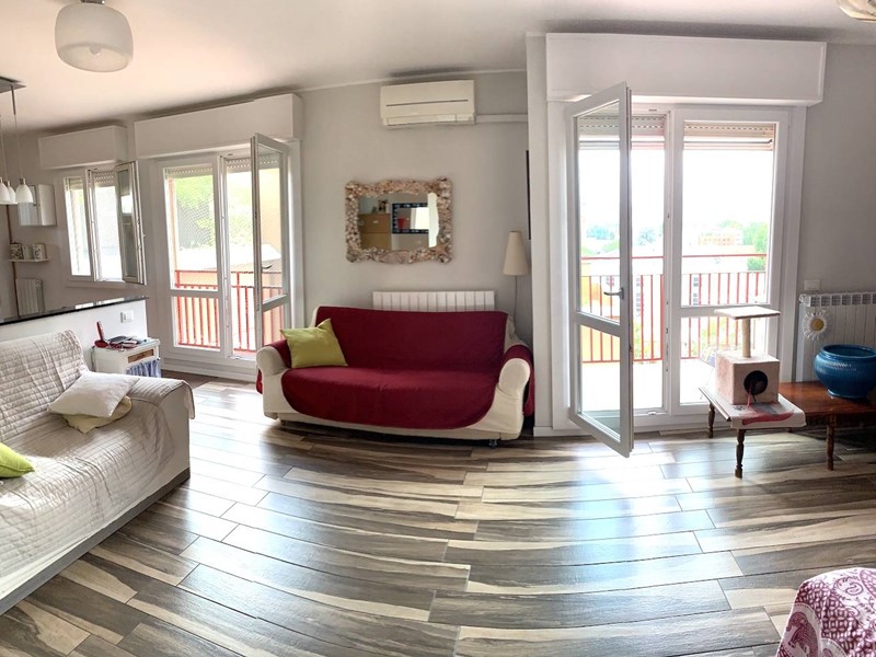 Via Pannunzio, in posizione logistica molto interessante e vicinissima allingresso di tangenziali e autostrade, proponiamo in stabile medio-signorile con giardino condominiale al sesto piano con ascensore appartamento di mq 114 commerciali con quadrupla esposizione, composto da ingresso, soggiorno con cucina a vista, due camere, un bagno completo con vasca e doccia, una lavanderia con due punti acqua, balcone, veranda con due punti acqua e possibilità di installazione di una cucina esterna, oltre a un magnifico terrazzo di 50 mq completo di impianto di irrigazione.