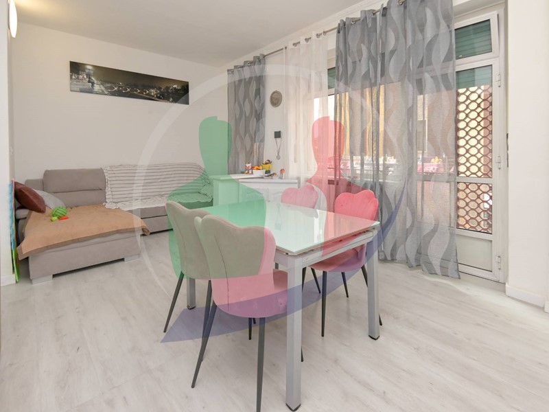 Composto da: Ampio ingresso, ripostiglio, due ampie camere da letto di cui una con balcone, bagno finestrato con box doccia e un bel soggiorno molto funzionale squadrato con cucina lineare e balcone.