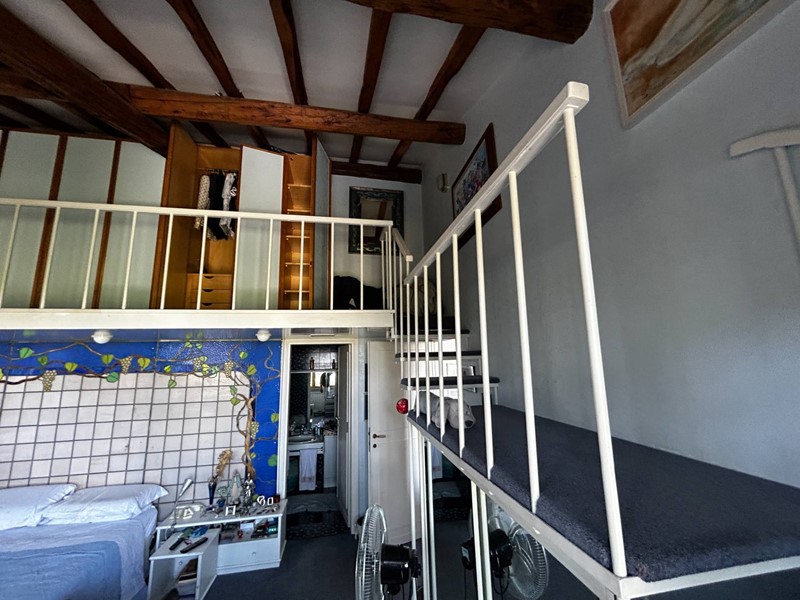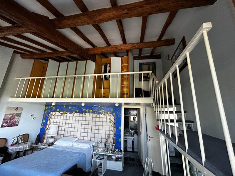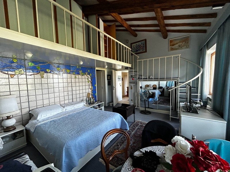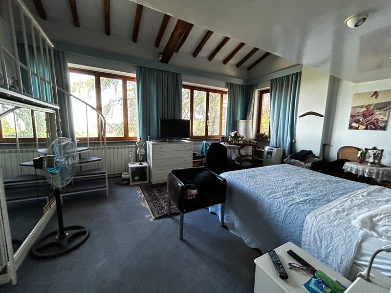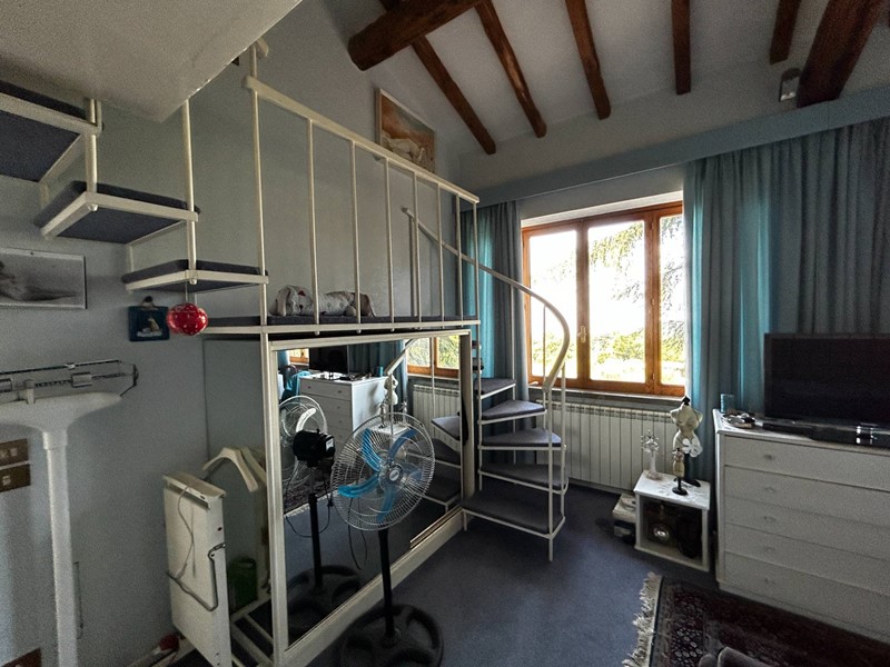 Unagevole scala della suite matrimoniale conduce ad un soppalco con tutta quanta un armadiatura a muro molto ampia, grande bagno e piacevole vetrata con vista su tutta la proprietà con Roma come sfondo.