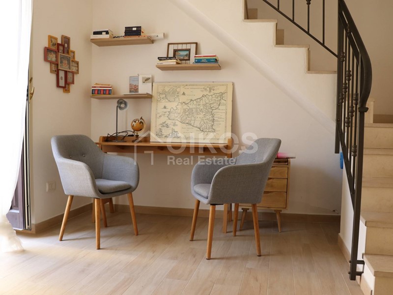Al piano terra si trova una comoda zona giorno composta dalla cucina abitabile e da un bagno; salendo al primo piano, si accede alla camera da letto principale, spaziosa e luminosa, accompagnata da un piccolo studio o angolo lettura, ideale per lavorare da casa o per momenti di relax.
