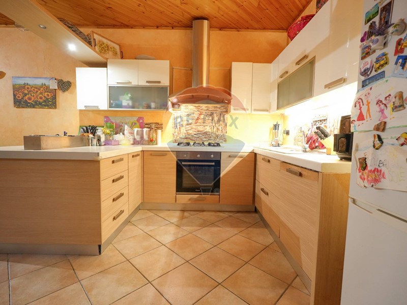 Una generosa cucina abitabile al piano inferiore, perfetta per gli amanti della buona tavola.