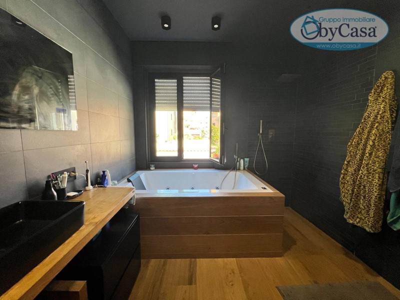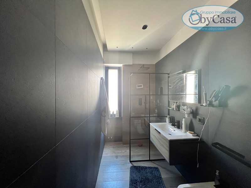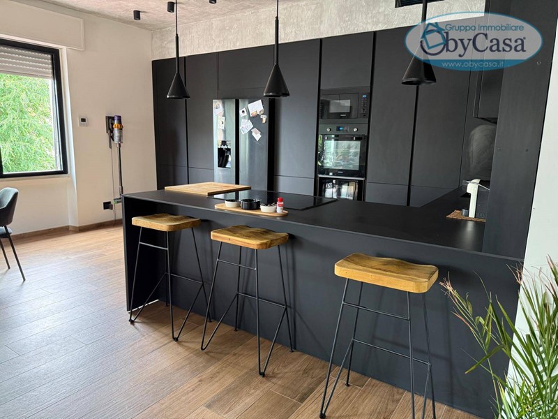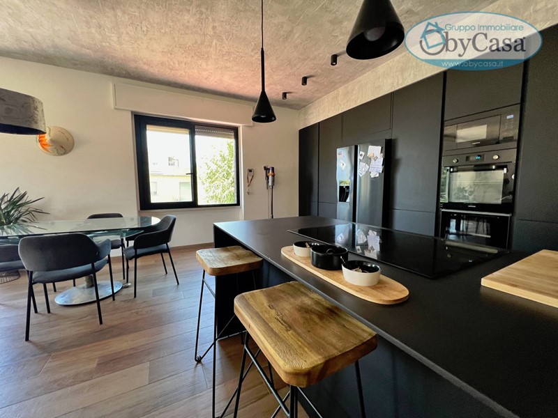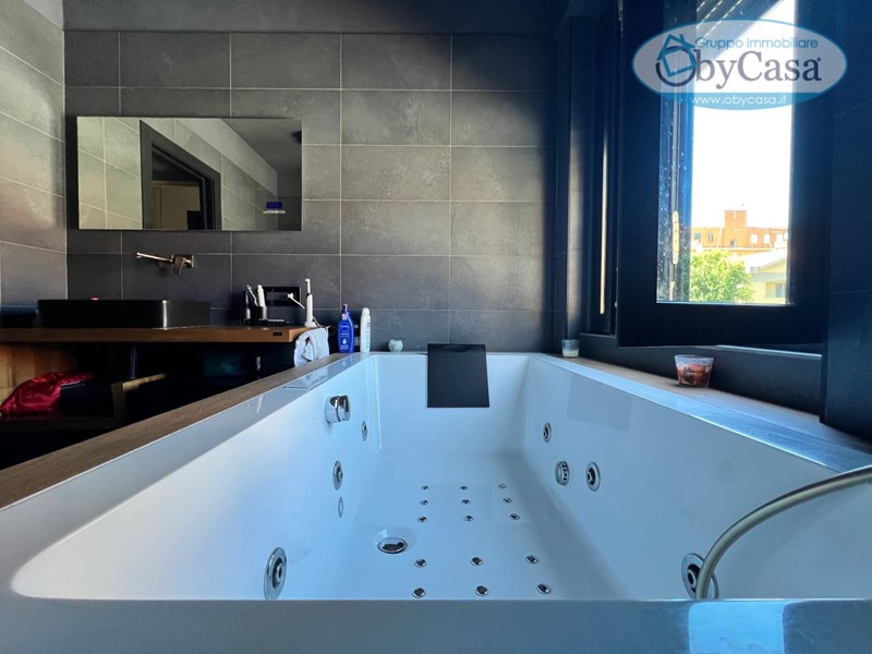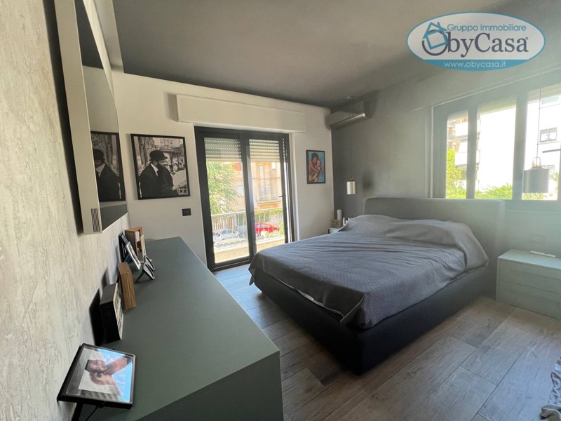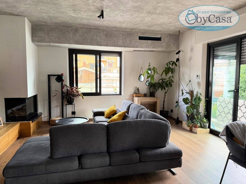 La Obycasa Marina di San Nicola propone in vendita esclusiva, appartamento al piano primo di 150 mq completamente ristrutturato con materiali di prima scelta, al centro di Ladispoli, a due passi dal mare.La proprieta' si sviluppa su tutto il piano ed e' composta da ingresso ampio e ben illuminato con illuminazione a Led sui gradini, armadi a muro e scarpiere, zona living "open space" con cucina a vista con isola centrale e camino,soffitto effetto cemento e condizionatori canalizzati.Tre ampie camere da letto con doppie finestre e striscia a Led contorno soffitto, cabina armadio e condizionatori.Due bagni di cui uno con vasca idromassaggio doppia e doccia.Riscaldamento al pavimento e infissi in alluminio termico con tapparelle in alluminio.Completano la proprieta' due balconi.