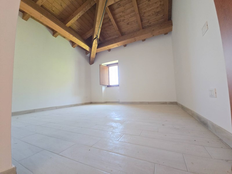 Un'antica scala in pietra ci conduce al secondo piano dove veniamo accolti da un ampio salotto servito da balconcino, zona living con predisposizione per agolo cottura, due camere e bagno, il tutto rifinito con tetto in legno a vista.