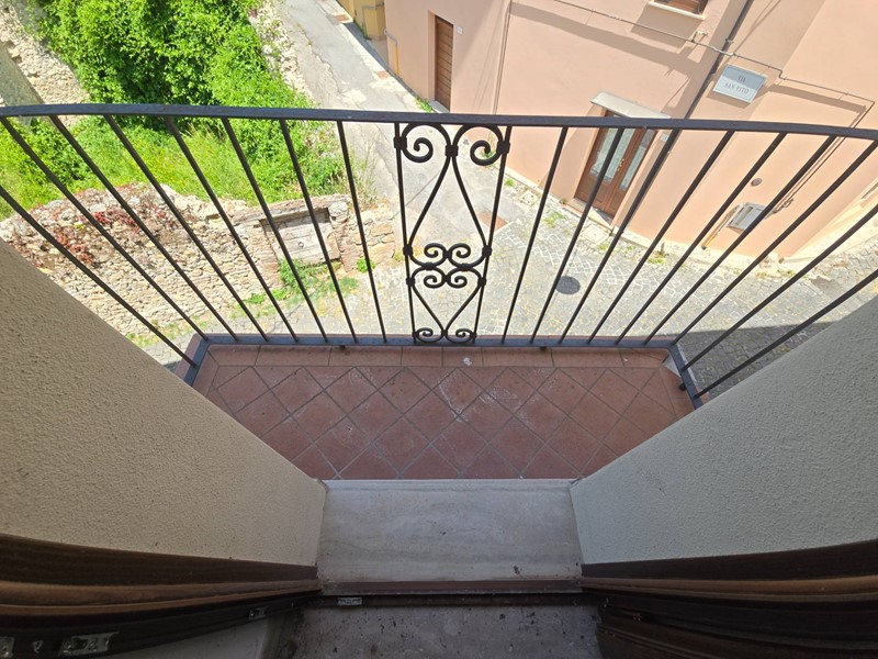 Una scala in legno ci conduce dalla zona living ad un terrazzo coperto di 25 mq ca, con splendida vista sul centro storico del paese.