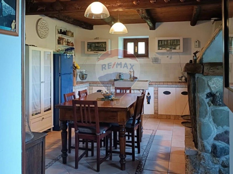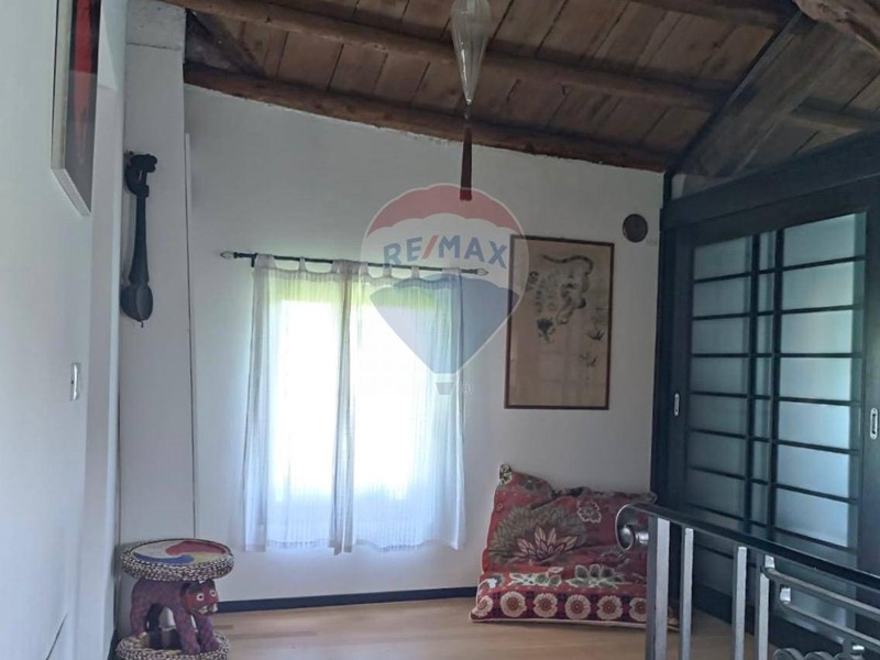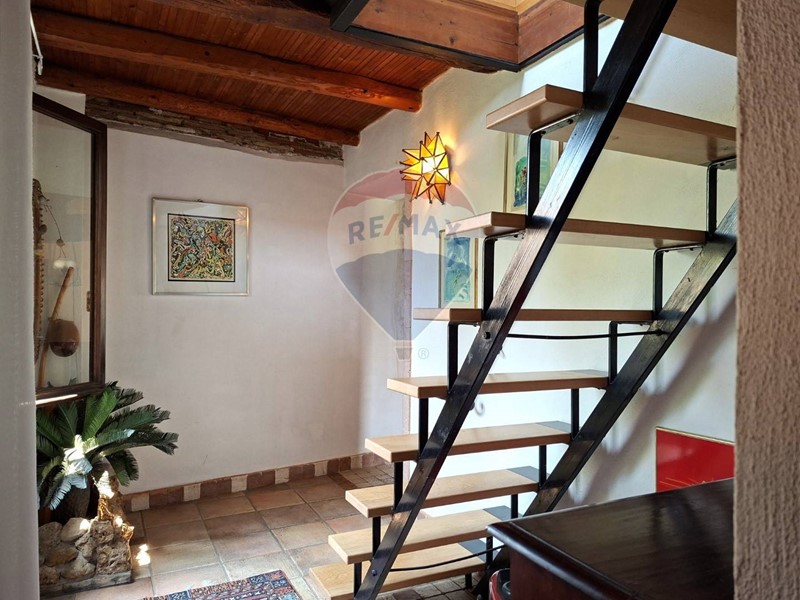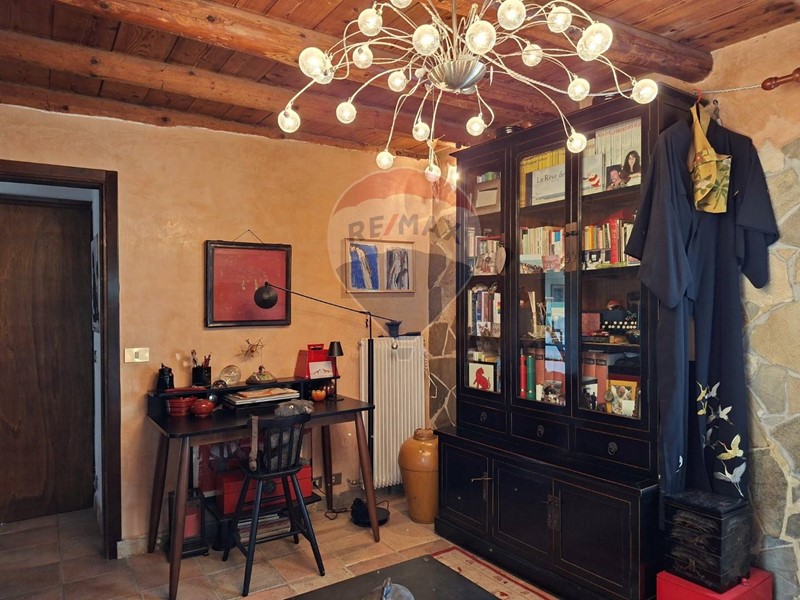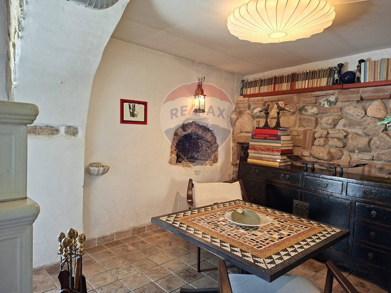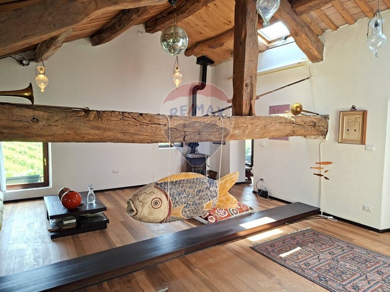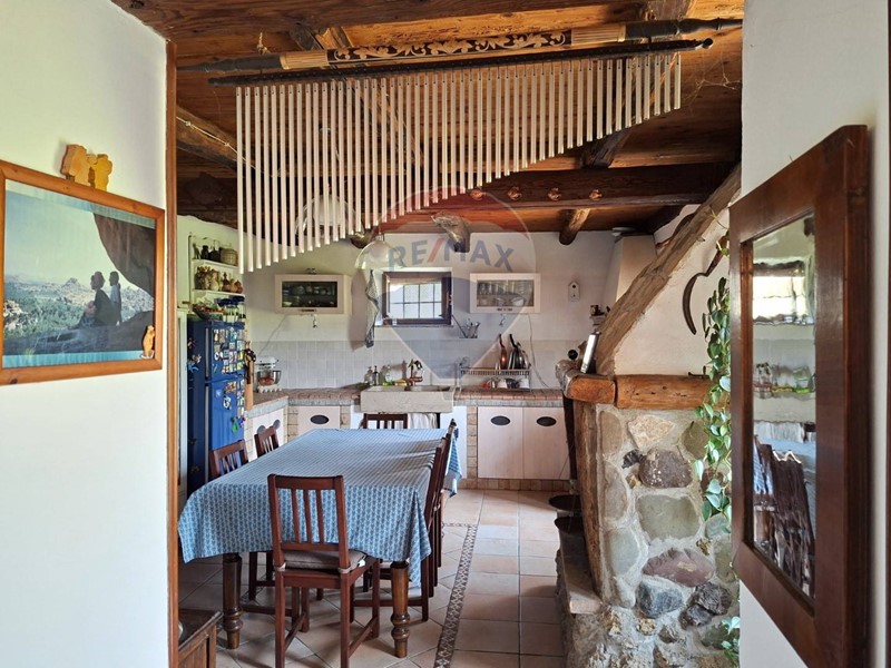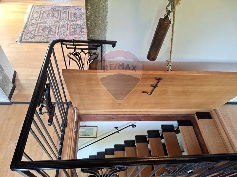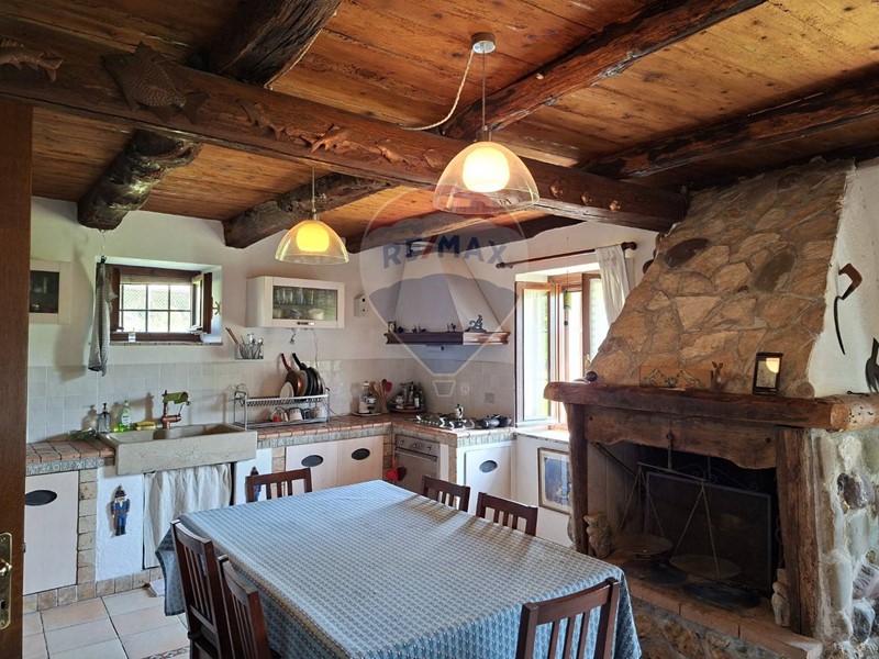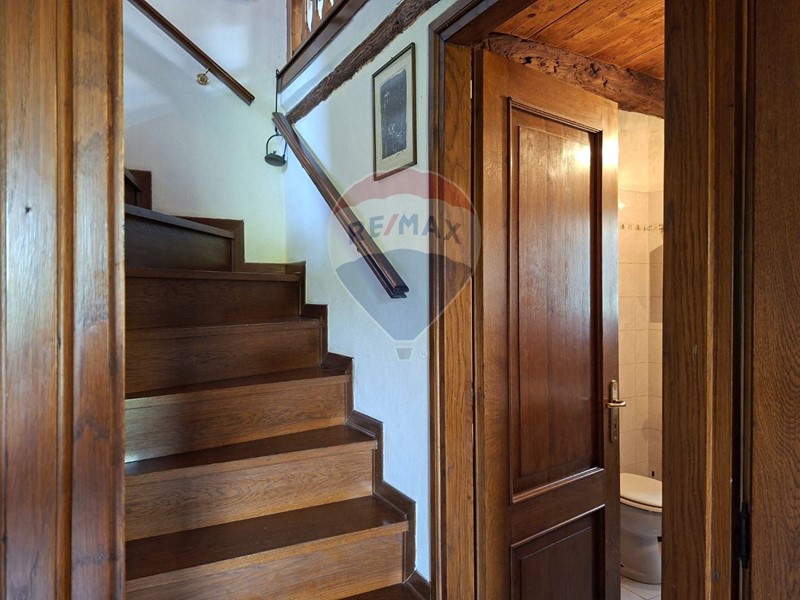 - Al piano terra una cucina abitabile, che mostra il sapiente recupero dell'antico focolare, introduce al salone con stube e zona relax sotto l'antica arcata. Un bagno con doccia e un sottoscala completa il piano terra.