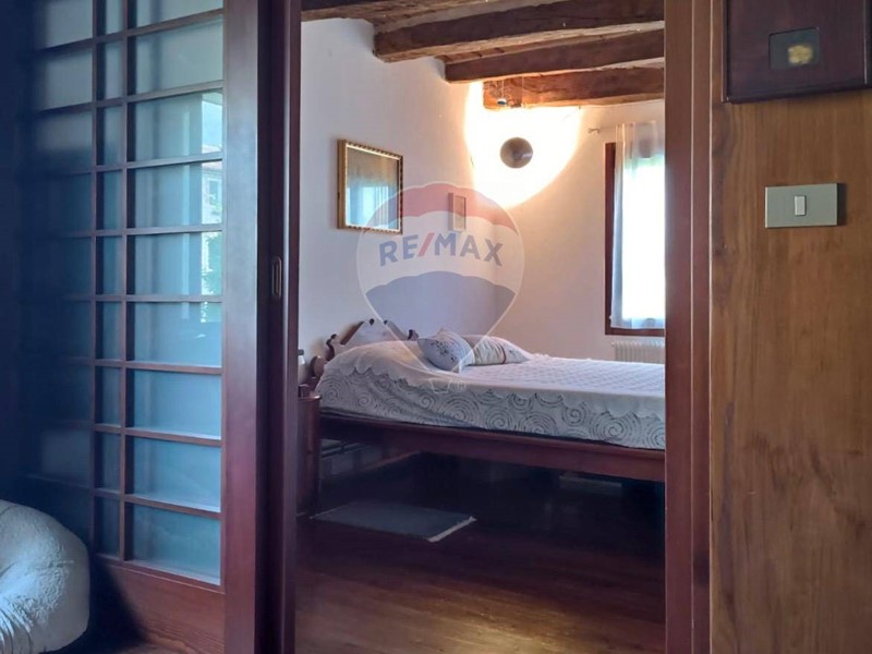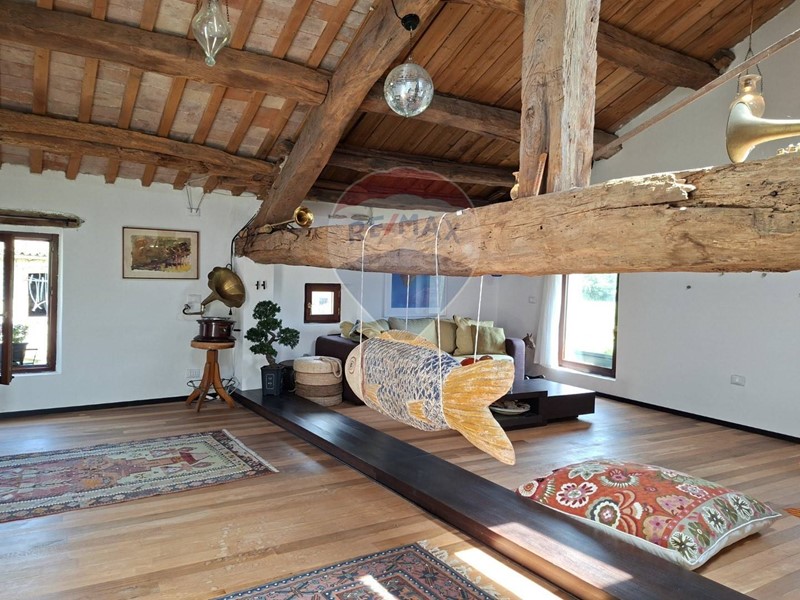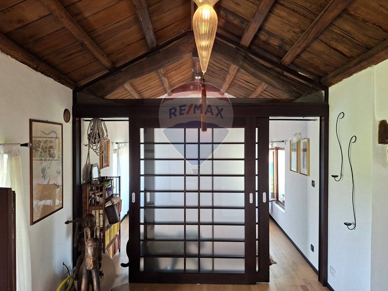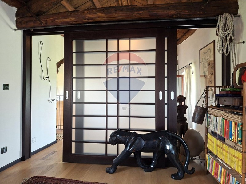 L'ottimo intervento di ristrutturazione mette in luce la bellezza dell'edificio originario e ne fa risaltare gli elementi lignei e le soluzioni architettoniche e di arredo come le pareti scorrevoli in stile giapponese, contemporaneamente ottenendo una buona performance energetica.
