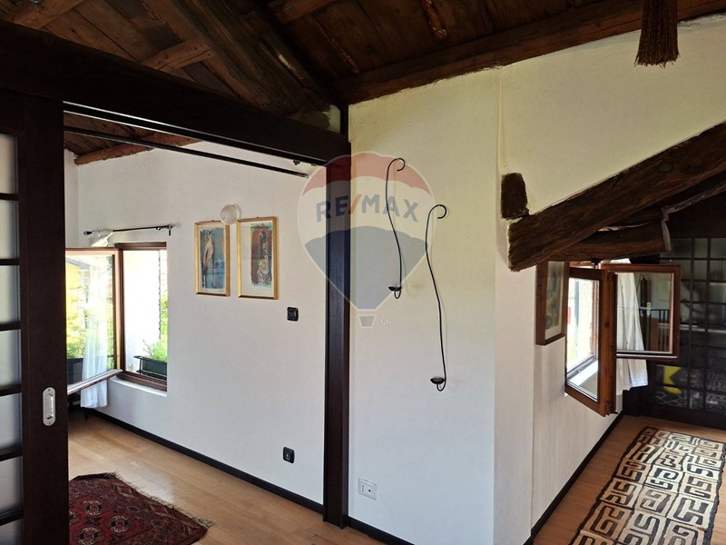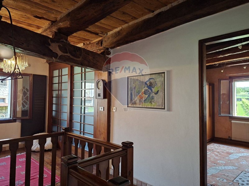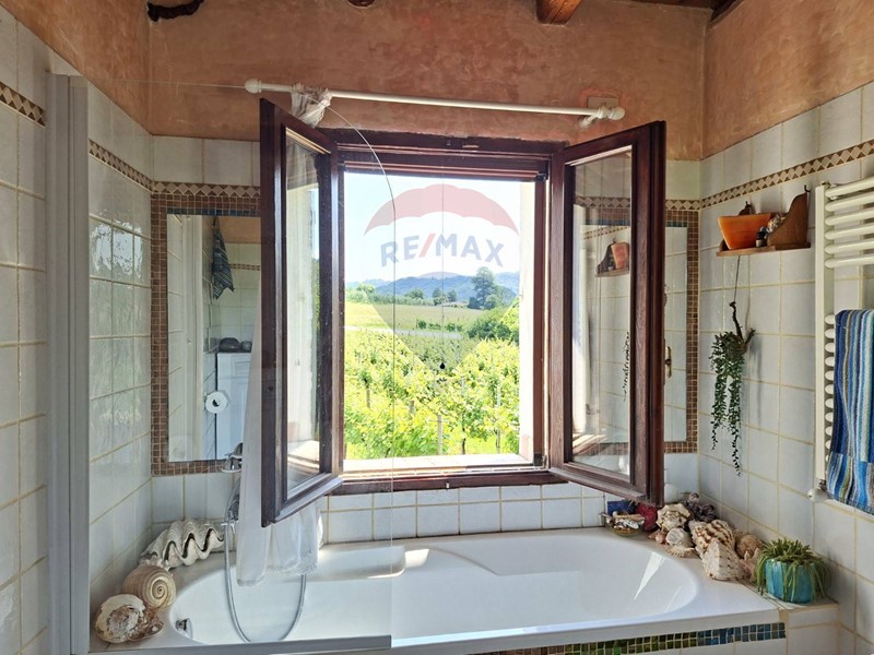 - Salendo al piano primo tre luminose e confortevoli camere sono attualmente adibite a camera matrimoniale, guardaroba-studio e salone, dal quale si accede al magnifico terrazzo affacciato verso Castelbrando e le colline. Un bagno con vasca serve la zona notte.