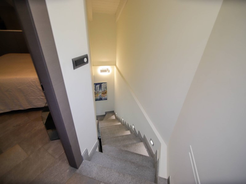 Al piano interrato si trova la tavernetta, ideale come zona relax o area hobby, con accesso diretto al box auto triplo, perfetto per più veicoli o come spazio deposito aggiuntivo.