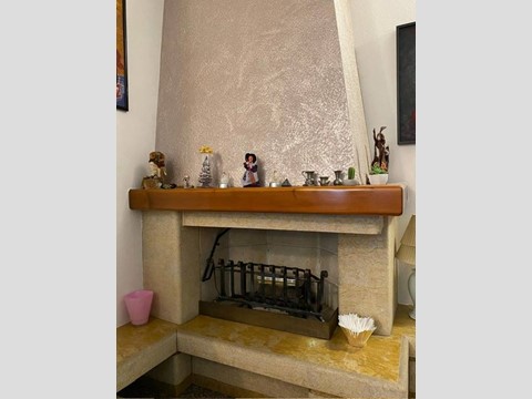 L'ingresso alla casa si apre su un ampio e accogliente soggiorno, dotato di caminetto e grandi finestre che garantiscono una piacevole luminosità naturale oltre ad uno spazioso balcone.
