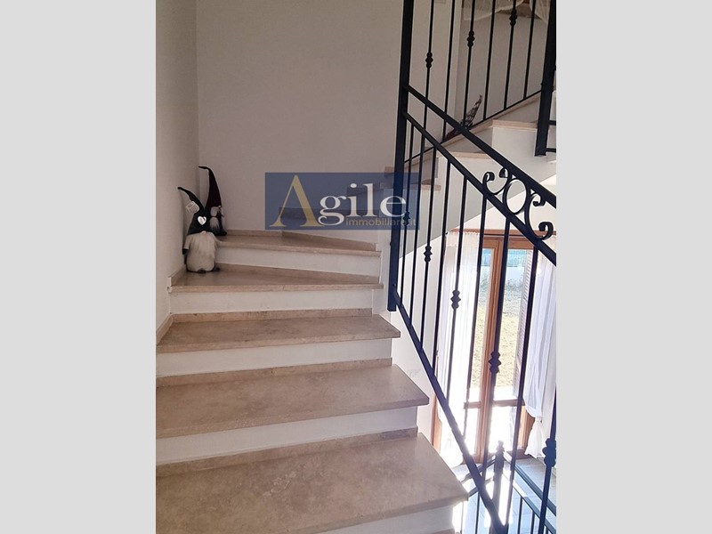 L'unità in oggetto di recente costruzione " 2005 ", pari al nuovo, con finiture di pregio, dotata di pavimentazione in Gres porcellanato su tutto il piano terra, parquet su tutto il primo piano, infissi in legno doppio vetro con zanzariere e persiane in alluminio con alette regolabili, portoncino blindato, impianto riscaldamento con caldaia a condensazione di recente installazione " 2022 " posizionata all'esterno, impianto di allarme perimetrale e volumetrico con videosorveglianza visionabile tramite il Web, climatizzatore split nella zona notte, impianto irrigazione giardino con pozzo di proprieta';