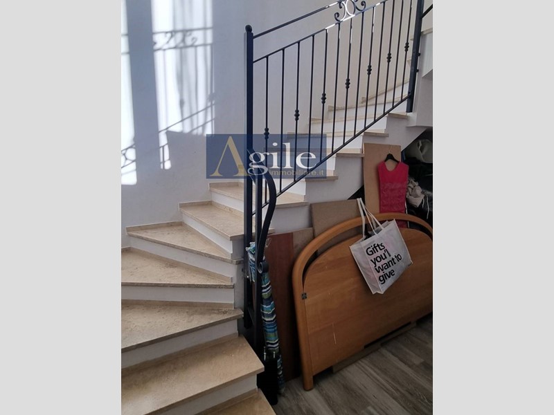 - Primo piano delle dimensioni di 80 mq circa collegato da una comoda ed elegante scala interna cosi' suddiviso: disimpegno zona notte, una camera matrimoniale con cabina armadio e balcone, una camera doppia con balcone, una camera singola con balcone, bagno finestrato con vasca con ampia armadiatura a muro;