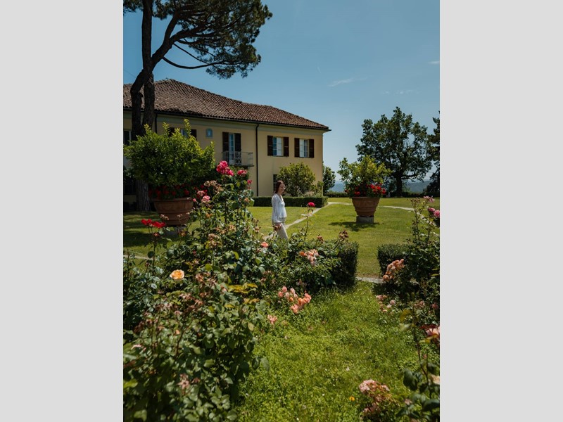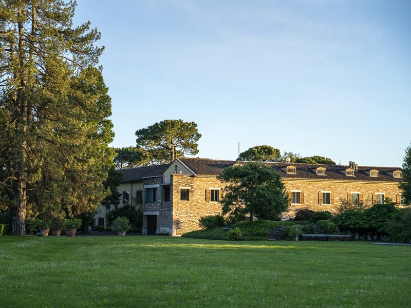 La proprietà si compone di due corpi principali, attorno ai quali si estende uno dei giardini moderni più straordinari dItalia, premiato nel 2011 con il prestigioso "European Garden Award" come giardino più bello dEuropa. Lintera tenuta si sviluppa su 10 ettari di terreno, tra vigneti (2 ettari) e boschi di proprietà.