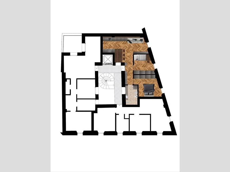 Lintervento consiste nel risanamento di un immobile residenziale della prima metà del 900 volto a inserire in un edificio storico le esigenze abitative contemporanee.