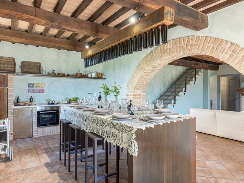 Completamente restaurata nel 2022, questa proprietà è un tributo alleleganza senza tempo. I materiali scelti parlano la lingua dellautenticità: pavimenti in cotto fatto a mano, archi in pietra viva, solai con travi in legno a vista. Le pareti dai toni caldi avvolgono gli ambienti creando unatmosfera intima e sofisticata. Le camere sono arredate con pezzi di design selezionati, e tutte dispongono di aria condizionata per un comfort ideale in ogni stagione. Gli impianti, completamente rinnovati, garantiscono un funzionamento efficiente e moderno in ogni area della casa.