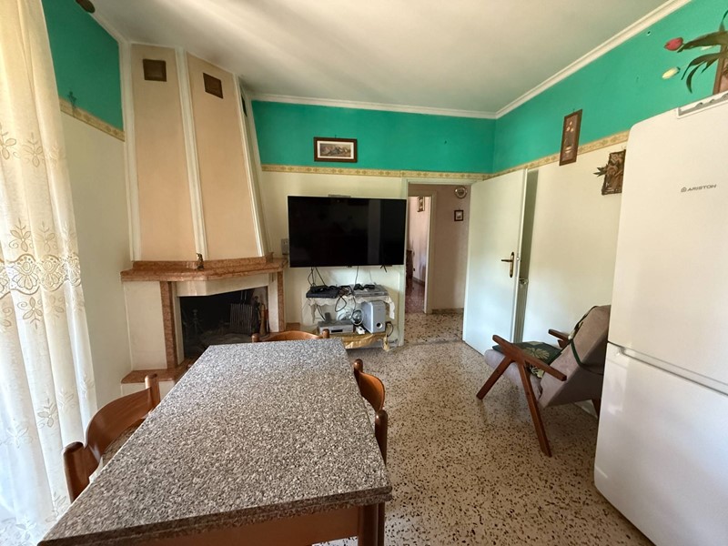 La casa si sviluppa su due livelli, uno dei quali, posto al piano terra, destinato ad ampio garage/magazzino, finestrato su tutti i lati e con pasculante automatica, salendo la scala esterna si raggiunge un ampio porticato in legno attraverso il quale si può accedere al portone d'ingresso ma anche al soggiorno ed alla cucina abitabile posizionati nella zona sud della casa; attraversando il corridoio si raggiungono le due camere da letto e l'ampio bagno finestrato; volendo effettuare lavori di ristrutturazione sarebbe estremamente facile ricavare una terza camera da letto matrimoniale e un moderno soggiorno con cucina a vista sfruttando tutto lo spazio del grande corridoio.
