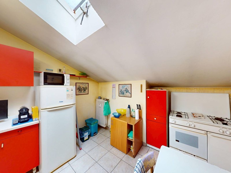 L'immobile, in buone condizioni interne, è composto da ingresso su disimpegno, cucina abitabile, ripostiglio, due camere da letto e bagno con finestra.