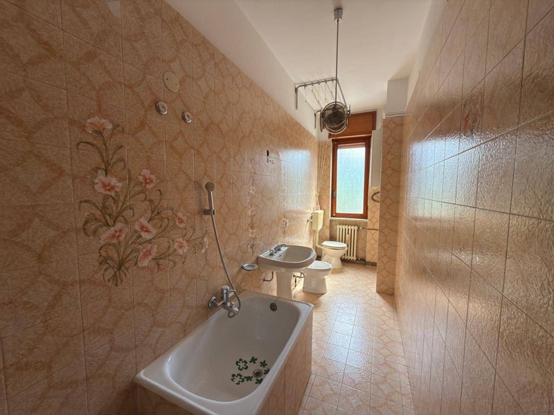 La soluzione è cosi composta: ingresso su disimpegno, ampio tinello con cucinino, due camere da letto di cui una dotata di balcone con affaccio su via Della Valle, ripostiglio e bagno con finestra.