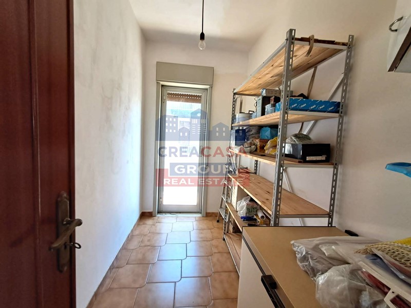 L'appartamento è attualmente è libero, si presenta in uno stato di conservazione da ripulire; Ideale per ospitare una famiglia numerosa ed è composto come segue: ampio salone di 2 vani, una spaziosa Cucina abitabile, disimpegno, 4 camere da letto, 2 bagni, Ripostiglio, ampio balcone a giro ed infine un Terrazzo che permette di godere di uno spazio all'aperto con una bella vista sul paesaggio circostante;