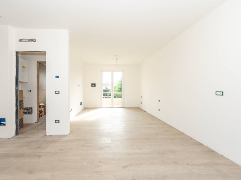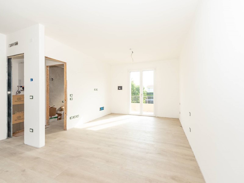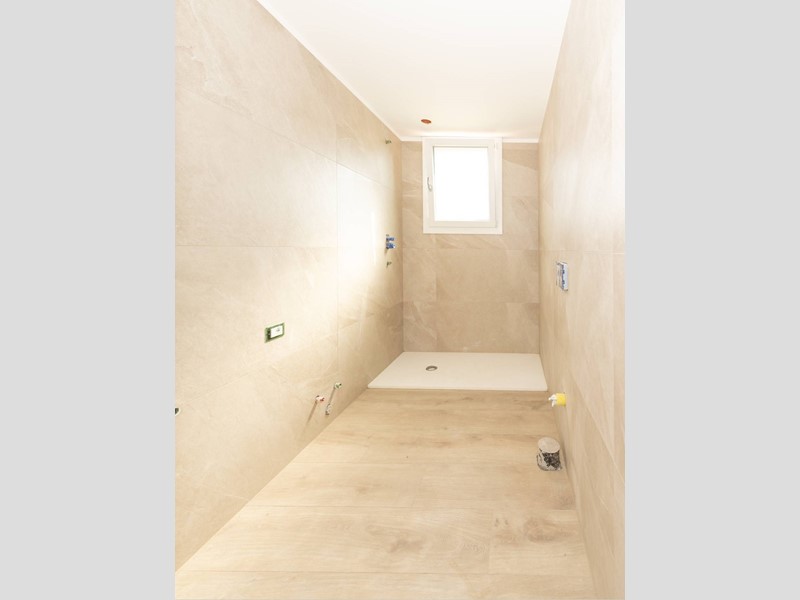 L'appartamento è composto da un luminoso soggiorno con predisposizione per angolo cottura, una camera matrimoniale e un bagno finestrato di design con doccia walk-in.