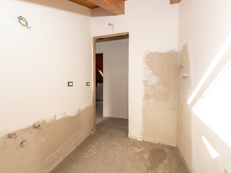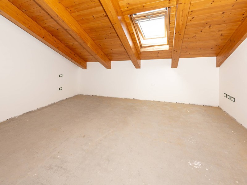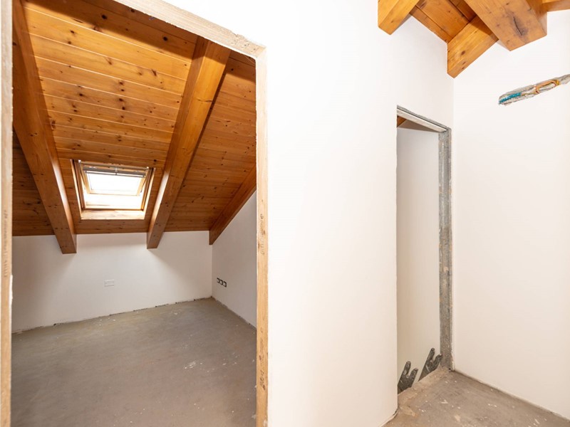 La mansarda con travi a vista in legno, ampia e finestrata, offre l'opportunità di ricavare fino a tre ambienti aggiuntivi, adattabili a seconda delle esigenze: stanze, magazzino, studio, zona relax o cabina armadio.