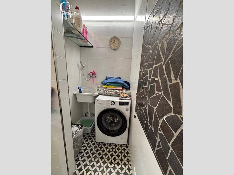 L'ingresso principale è ubicato nell'antica piazza con entrata da loggia di proprietà direttamente nel soggiorno con cucina open space, camera matrimoniale, stanza da bagno, accesso anche a terrazza abitabile con scala esterna che porta al giardino. Attraverso una scala interna si accede alla zona seminterrata dove troviamo 2 vani con altro servizio. Questa parte della casa ha anche altro accesso dal giardino di proprietà esclusiva dove vi è un piccolo ripostiglio condonato.