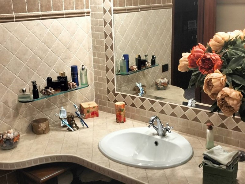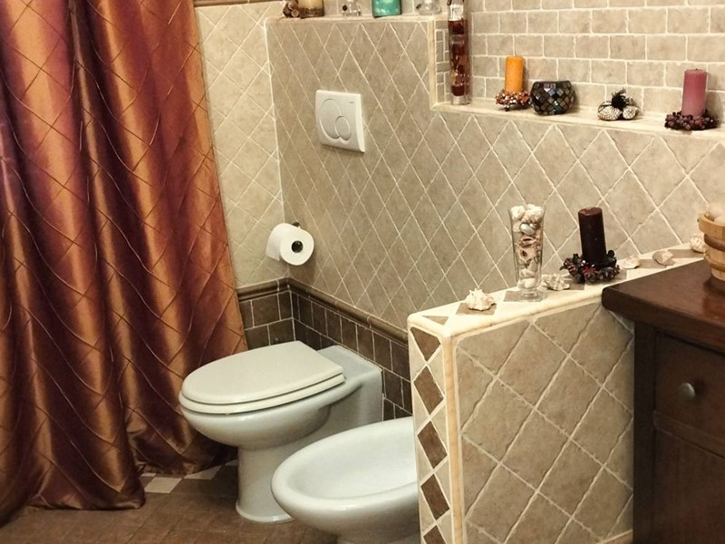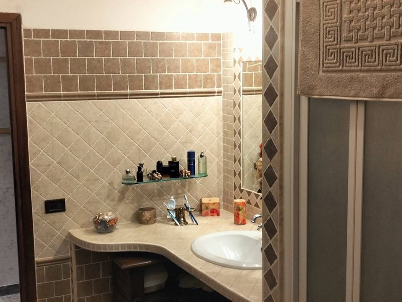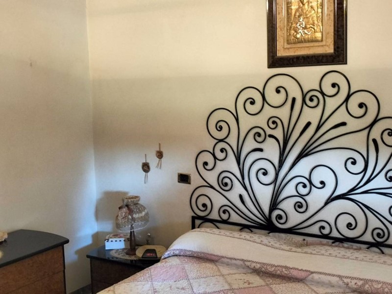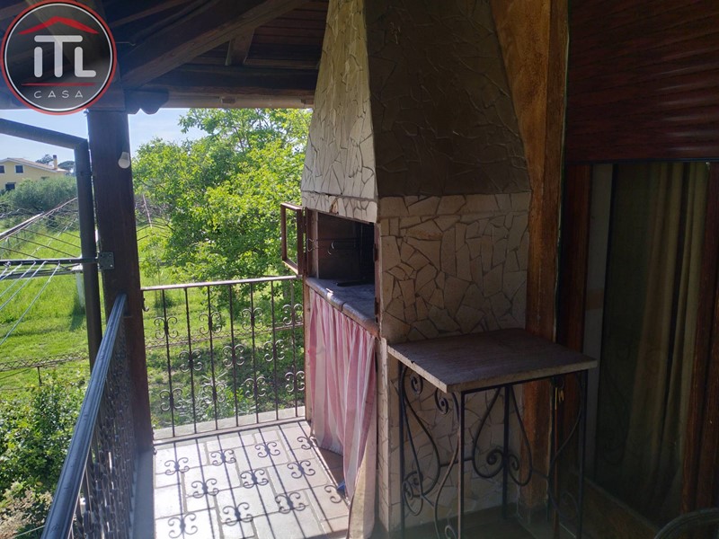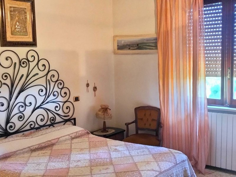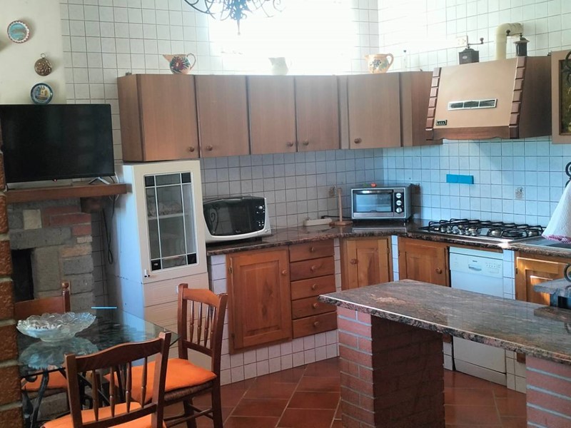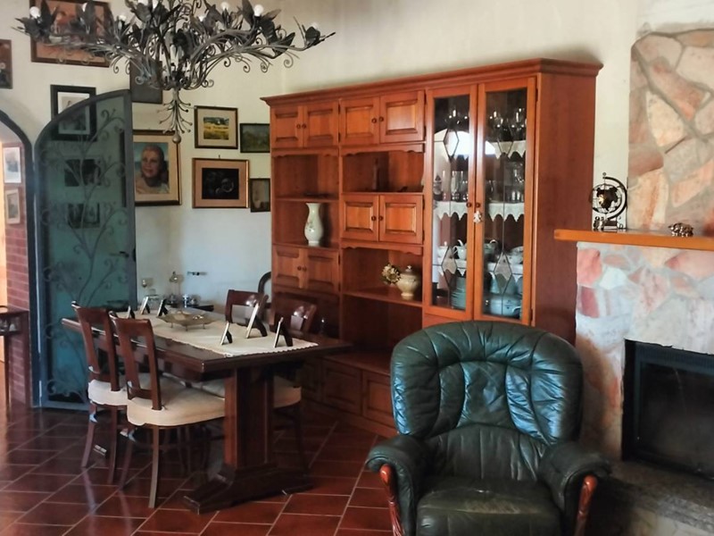 Dall'ingresso, proseguendo dalla cucina, un pratico disimpegno introduce ad un bagno e ad una grande camera, oltre a fornire accesso diretto all'ampia cantina. Sempre dallingresso una scala interna in muratura conduce al piano superiore, dedicato alla zona notte. Qui si trovano un corridoio, un bagno, ben 5 camere da letto munite di aria condizionata di cui una con bagno. Da ben tre di queste si accede ad un balcone coperto di circa 30 mq, impreziosito da un forno barbecue in muratura, un vero invito alle serate conviviali.