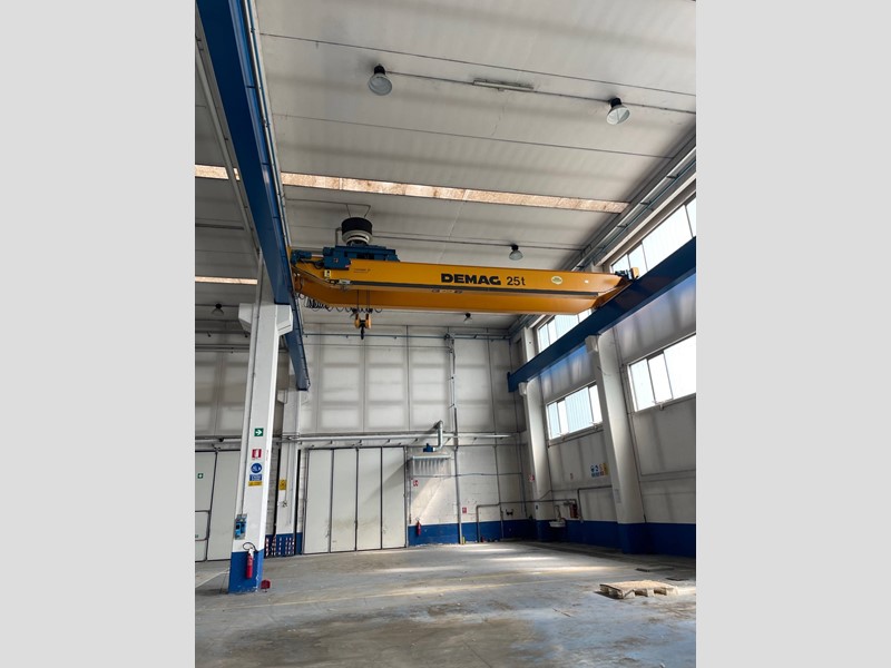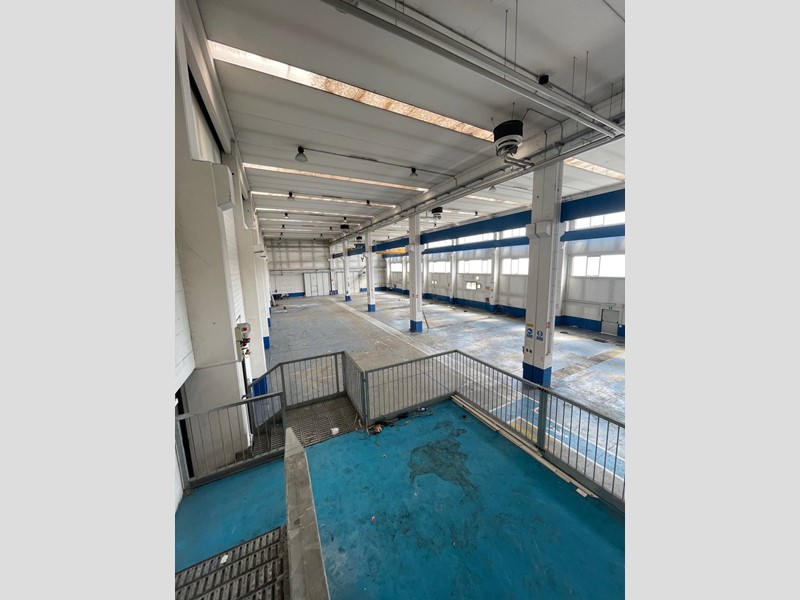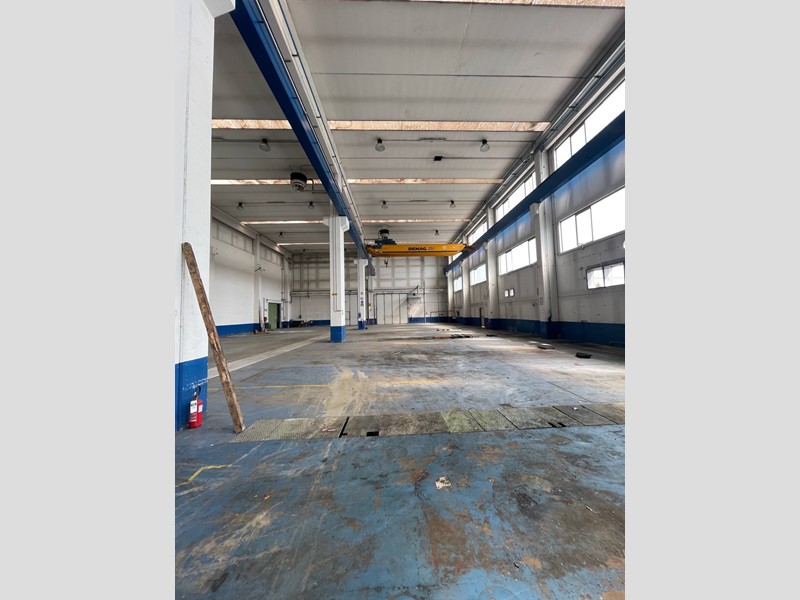 Lo stesso capannone industriale, si può frazionare in circa 3.100 mq. di superficie coperta del solo capannone a uso produttivo, con altezza massima di 12 m. sotto trave e minima di 7,50 m., carroponte di 25 t., area esterna totale di mq. 1.700 ca.
