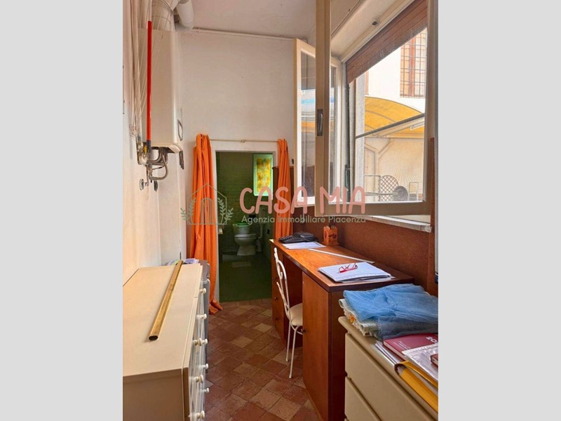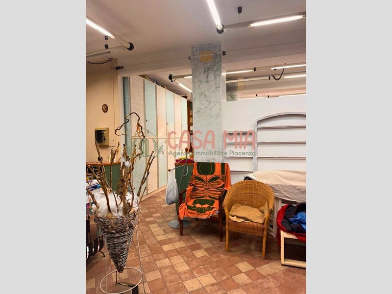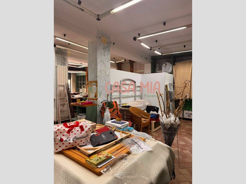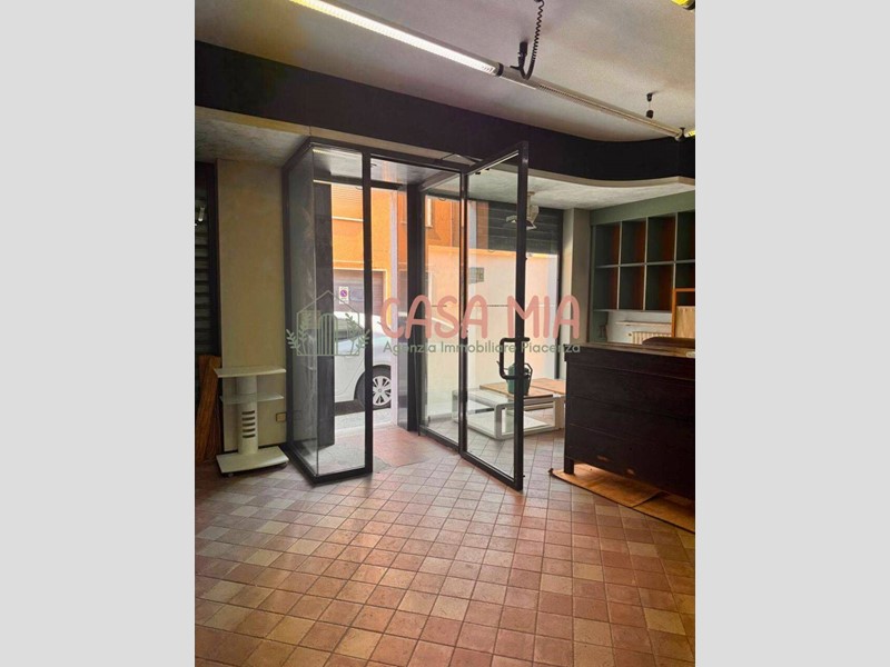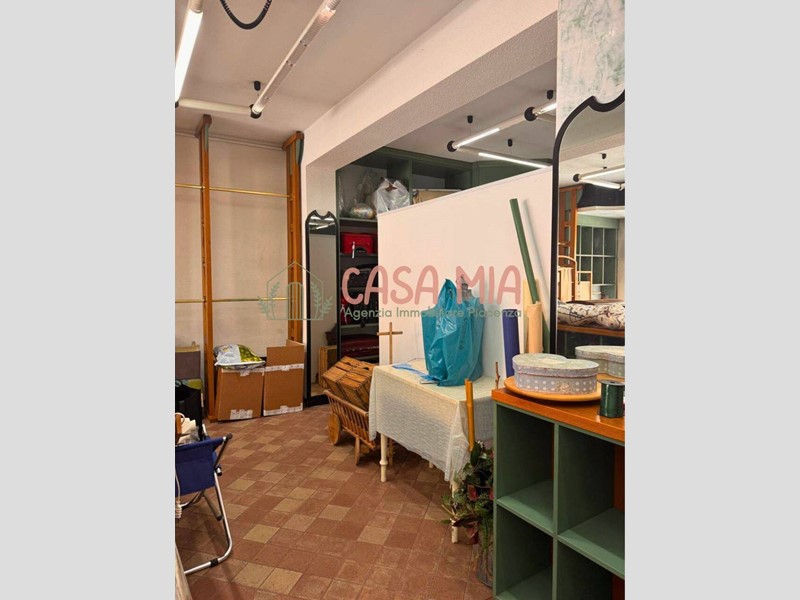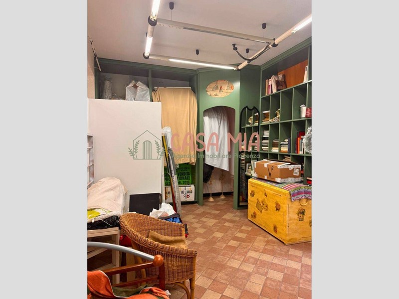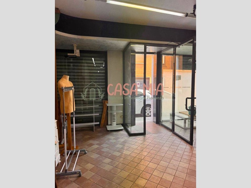 CASTEL SAN GIOVANNI: In posizione centrale negozio con doppia vetrina trasformabile in appartamento, infatti la pianta permette la creazione di 2 camere da letto, soggiorno con cucina a vista divisibile e un doppio servizio.