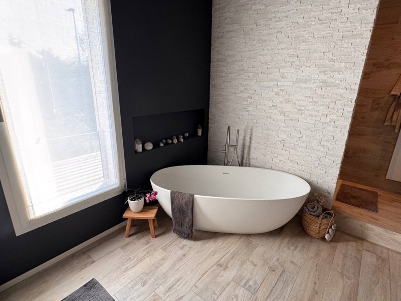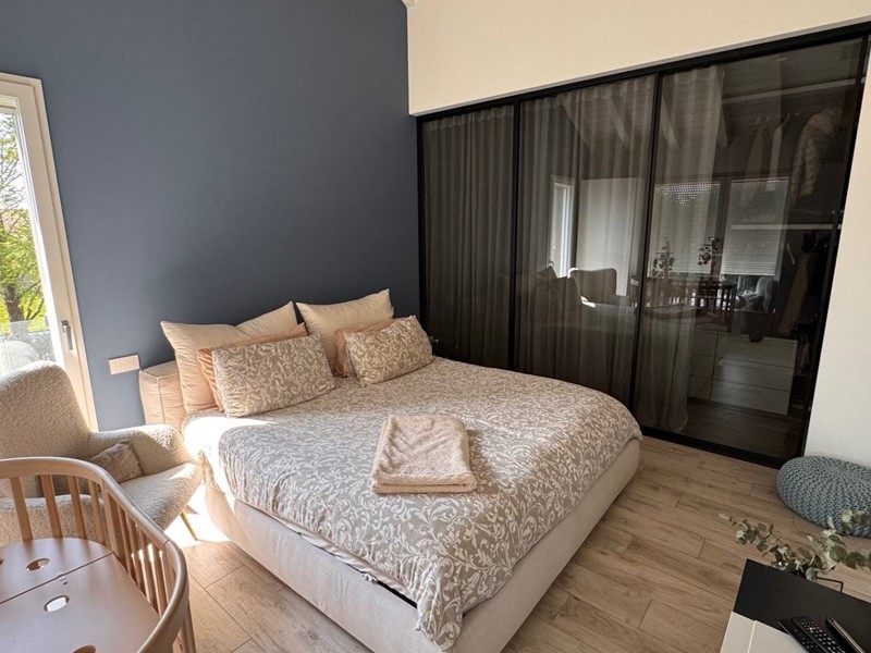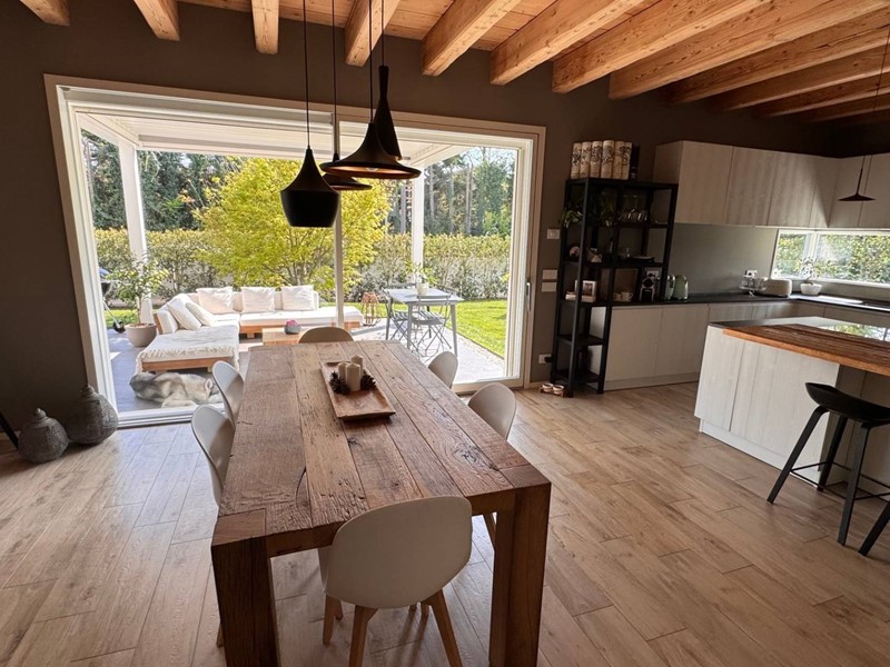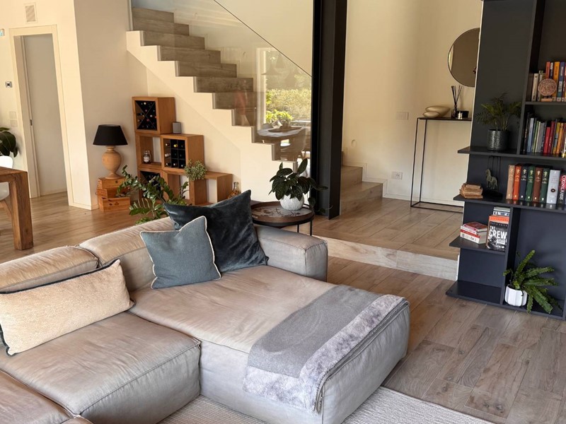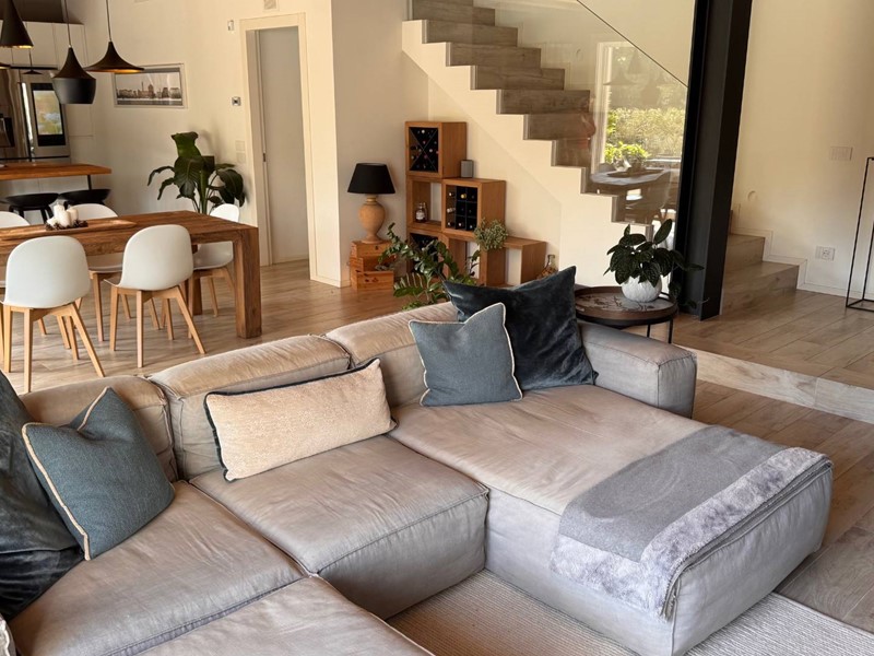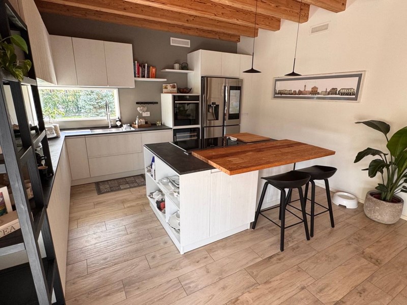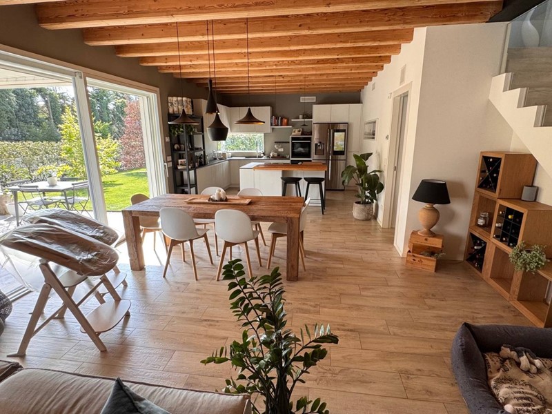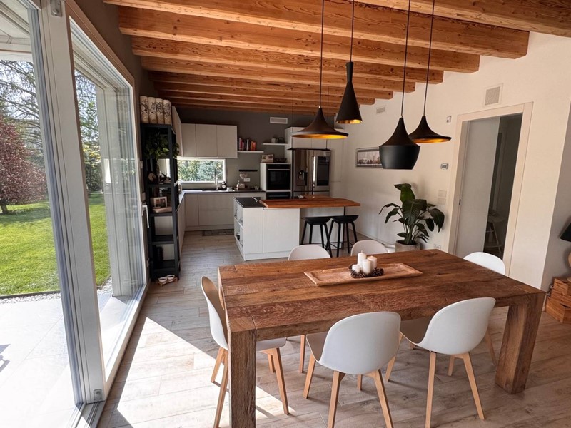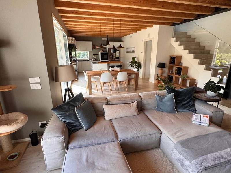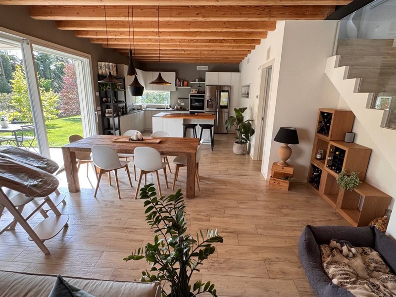 L'immobile si caratterizza per le ampie vetrate, le finiture e la tecnologia, infatti siamo in Classe Energetica A4, riscaldamento e raffrescamento a pavimento, Ventilazione Meccanica Controllata, Fotovoltaico per 6 Kw, impianto d'allarme gia installato, travi e legno ovunque.