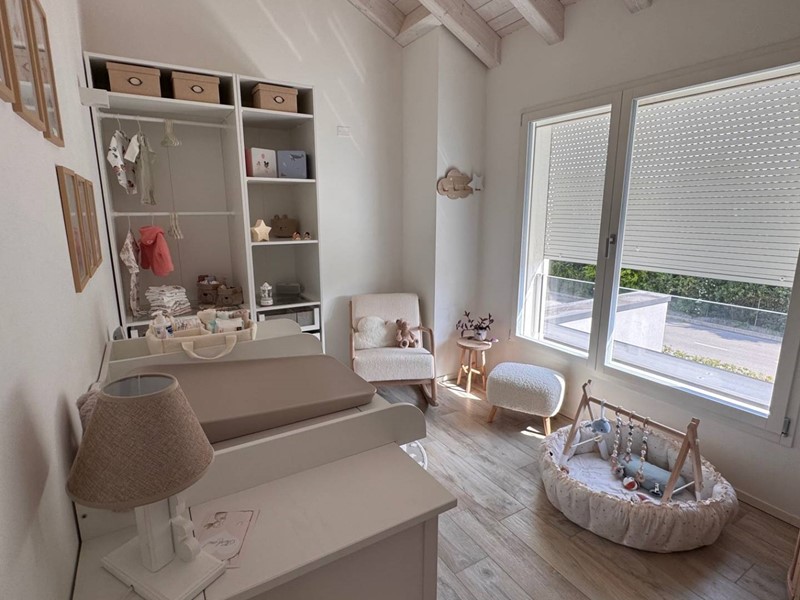 Al primo piano tre camere da letto di cui due singole ed una matrimoniale con cabina armadio e il secondo bellissimo bagno con vasca e box doccia.