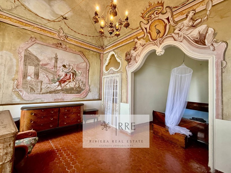 In vendita a Andora, nella prestigiosa zona di Rollo, si trova questo splendido quadrilocale situato al piano nobile di un palazzo storico risalente all'anno 1600, con soffitti a volte con decori a vista di altissimo valore storico e una vista mare mozzafiato.