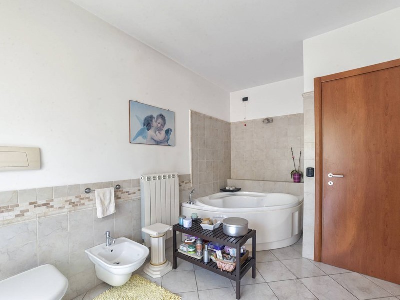 e qui il bagno padronale merita una standing ovation, che definirei, per i suoi spazi e lorganizzazione interna, una piccola SPA , inoltre puoi uscire, tramite la portafinestra, verso l'esterno rivolto sul retro verdeggiante dell'abitazione.