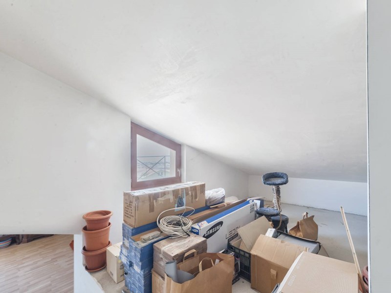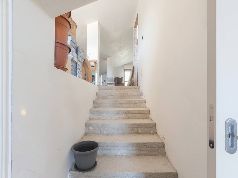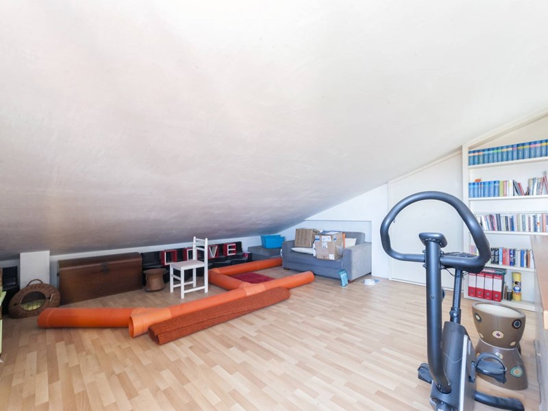 Hai a disposizione tutto il piano mansardato (locale di sgombero) parzialmente rifinito, per metà già pronto per destinarlo alle tue esigente, magari uno studio per lavorare in home working oppure stanza pluriuso per ragazzi. E accessibile, come vedi in foto, dalla scala a vista posta nella zona giorno.