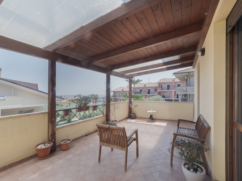 Una volta varcato il portoncino dingresso posto al piano primo, entri nella zona giorno luminosa e con spazi ben organizzati ma lo sguardo volge direttamente verso lesterno con laffaccio sul terrazzo direzionato verso il mare.