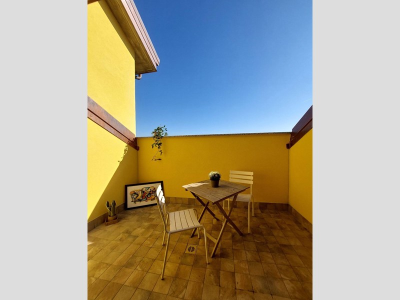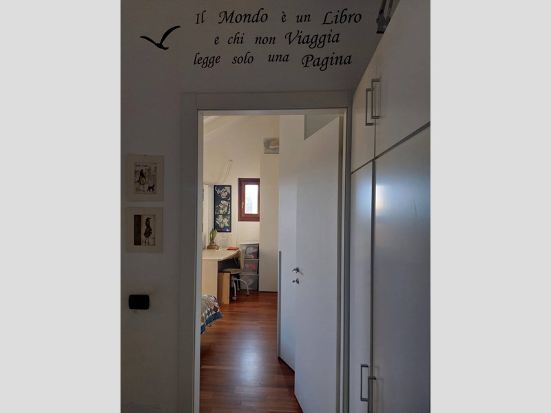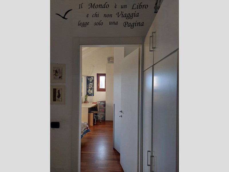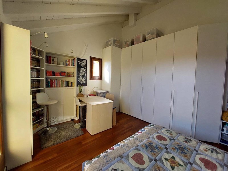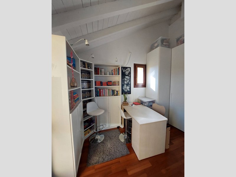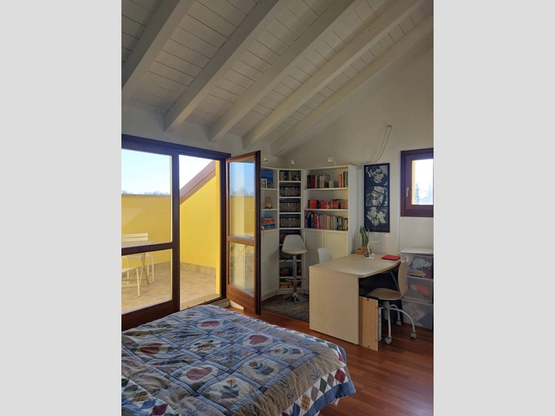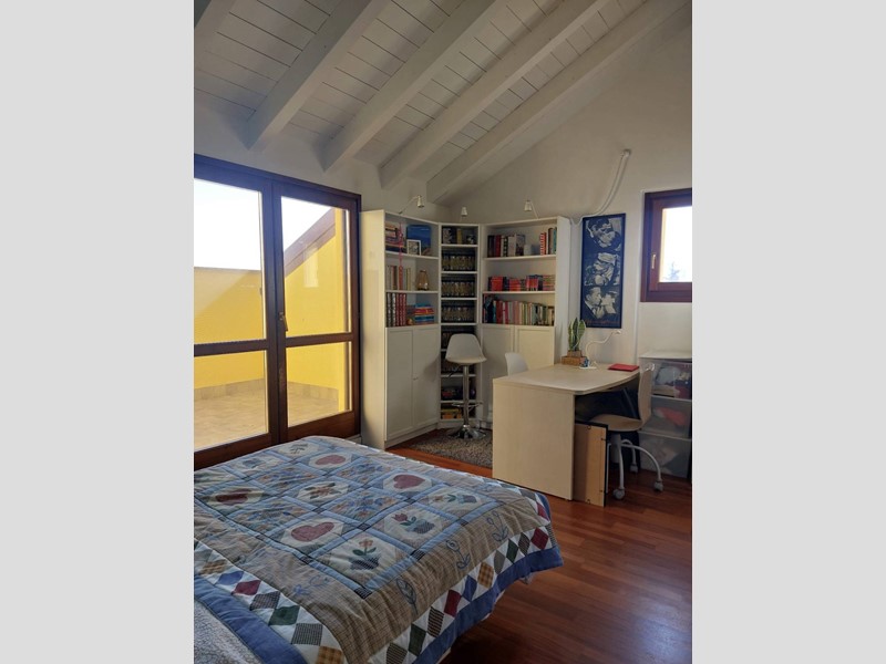 La spaziosa camera da letto presenta anche un angolo studio e un uscita su un ulteriore terrazzino appartato.