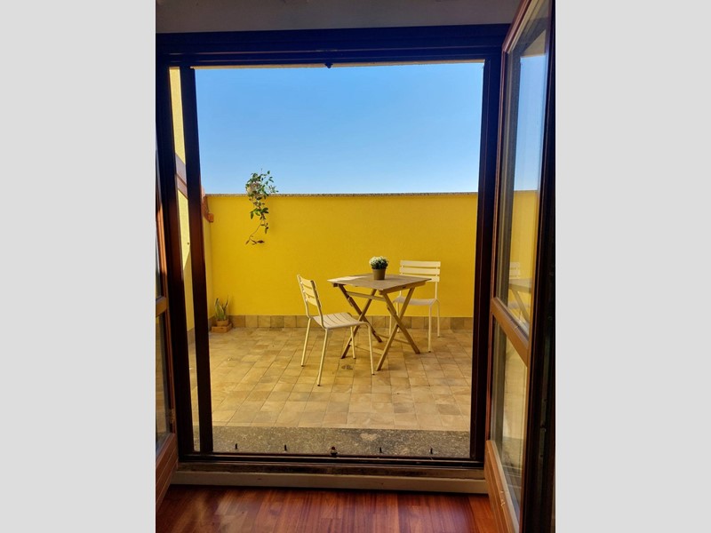 La porta d'ingresso si apre direttamente nel soggiorno con cucina a vista e terrazzo dove è possibile cenare in totale privacy e tranquillità.