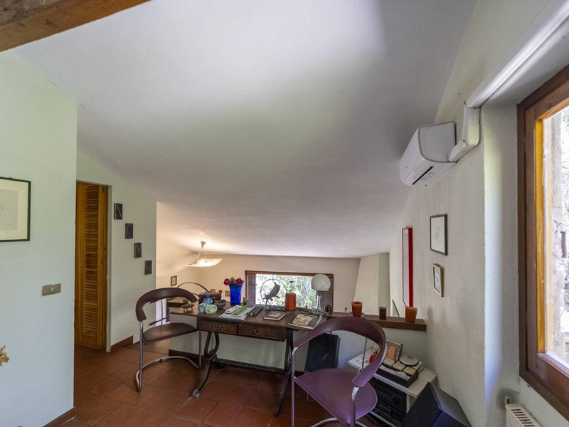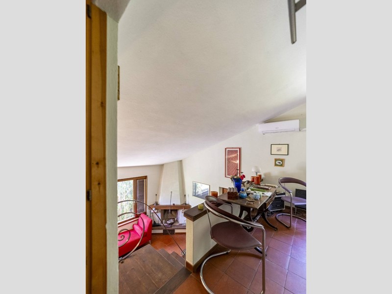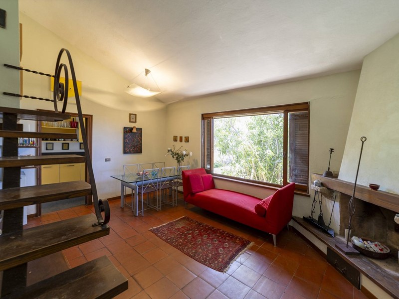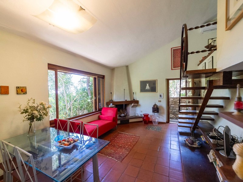La proprietà vanta spazi esterni adatti al pranzo, ombreggiati da vegetazione mediterranea ed è composta da soggiorno con camino, cucina completa, camera, camerata e bagno. Al piano superiore troviamo inoltre una zona living aperta sul soggiorno sottostante, camera e bagno.