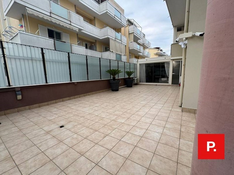 Dispone di salone con cucina a vista, due camere da letto, due bagni e un ulteriore vano di 35 mq realizzato sul terrazzo con pareti in vetro dotate di tende oscuranti. Possibile quindi ricavare la terza camera da letto poichè dotato di doppia cucina come mostrato nel render e nelle piantine.
