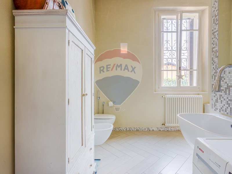 Il balcone offre una suggestiva vista sul verde circostante. Una scala interna conduce alla soffitta, un'ulteriore spazio utilizzabile come zona hobby o studio, che completa i due livelli della villa. La villa è dotata di riscaldamento autonomo a metano, dotata di pannelli solari per una gestione personalizzata e un comfort ottimale in ogni stagione. Un'opportunità unica per vivere in un'abitazione di prestigio, dove il lusso e la qualità si fondono in un'armonia perfetta, in un contesto di grande fascino e tranquillità.