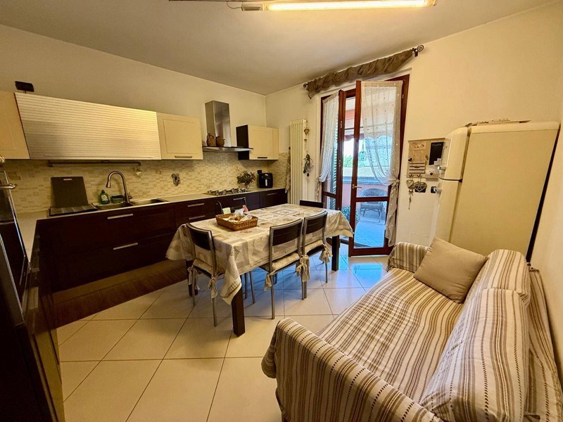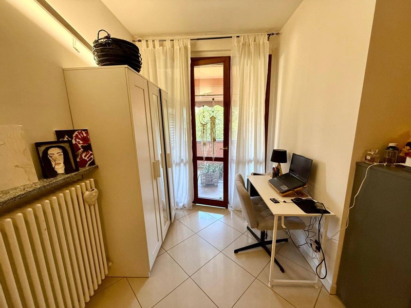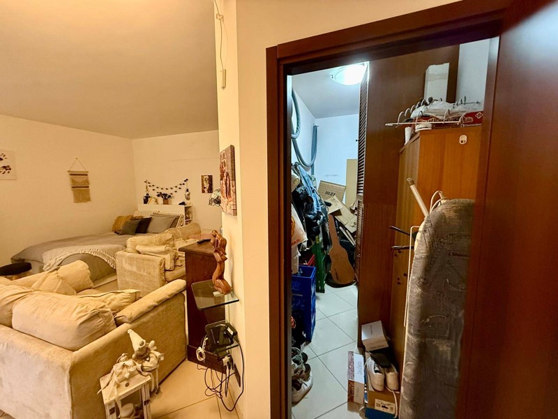 Lalloggio è composto da ingresso, ampio salone, cucina abitabile, camera matrimoniale, corridoio con locale lavanderia, grande ripostiglio e terrazzo esterno verandato. È possibile realizzare una seconda camera da letto, trasferendo la cucina nella zona giorno e creando un ampio open-space.