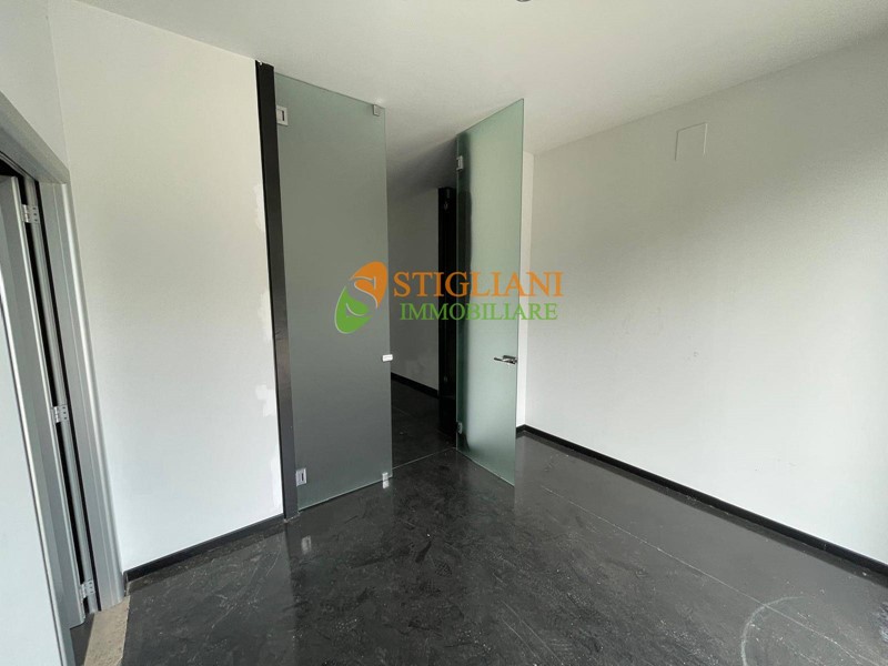 E' possibile accedervi tramite rampa stradale situata nella parte posteriore della costruzione, (percorribile sia a piedi che con veicoli) che approccia direttamente al grande terrazzo / piazzale scoperto da cui si accede all'immobile per via di due porte principali costruite in vetro,