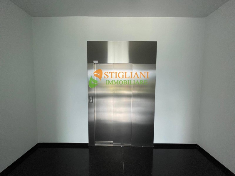 tramite ascensore accessibile dal piano terra precedentemente menzionato, e tramite ingresso esterno situato all'altezza del piano primo, alla fine delle scale individuabili sul lato destro della costruzioni (scale utilizzabili come entrata / uscita di emergenza).
