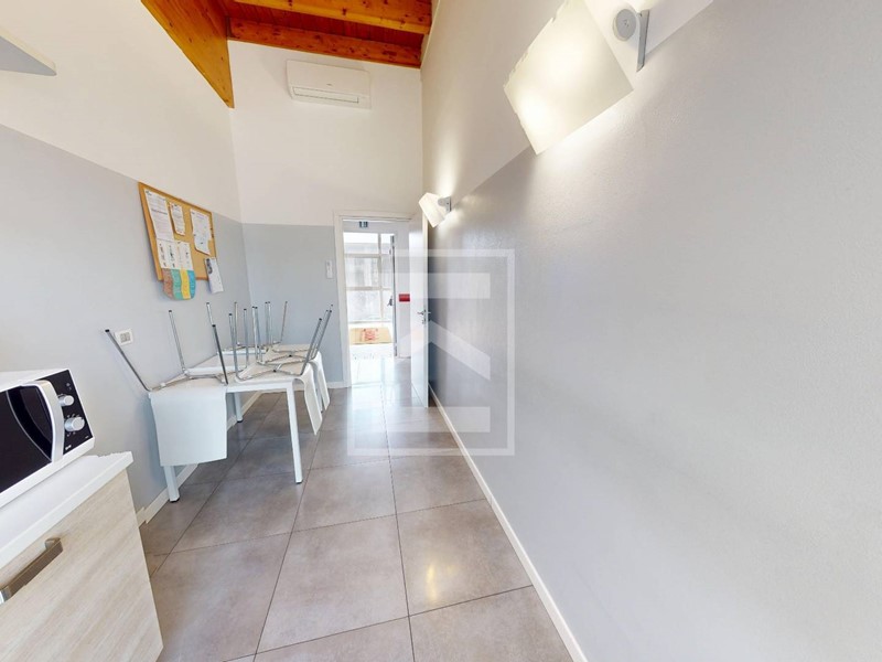 Caratterizzato da ampie vetrate che garantiscono ottima visibilità dalla tangenziale, l'immobile si distingue per la sua versatilità interna e per le dotazioni tecnologiche di alto livello, attualmente configurato per ospitare una software house.