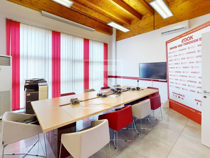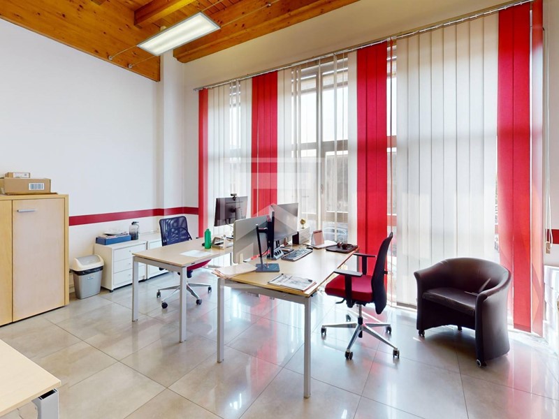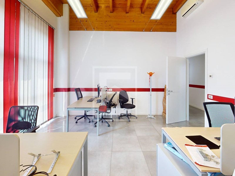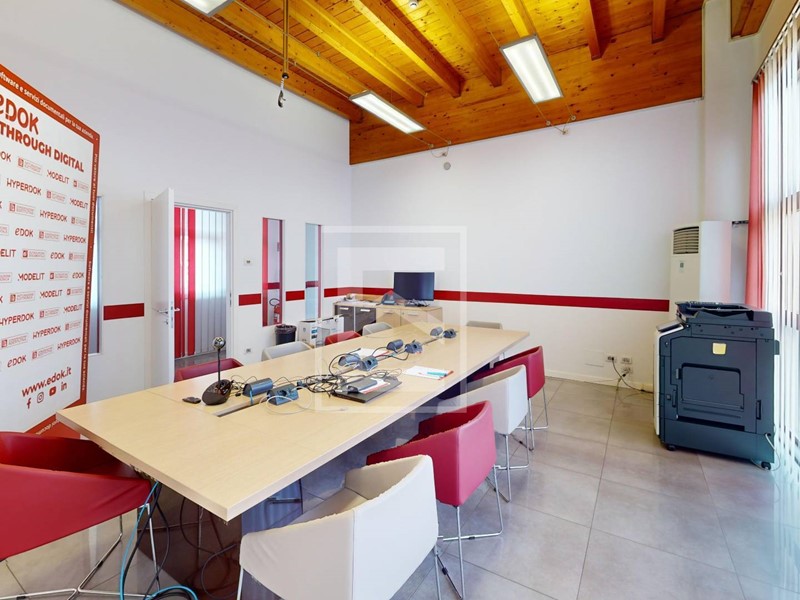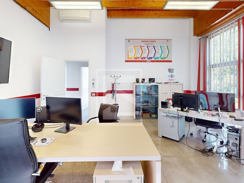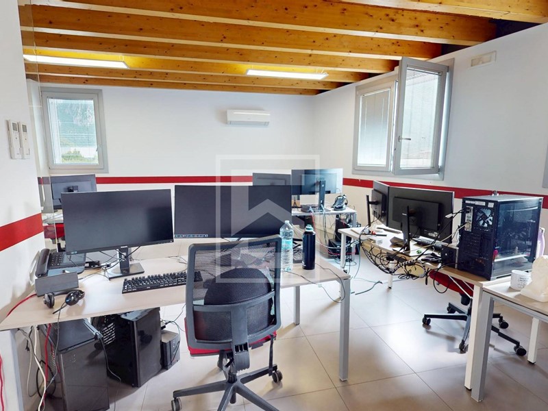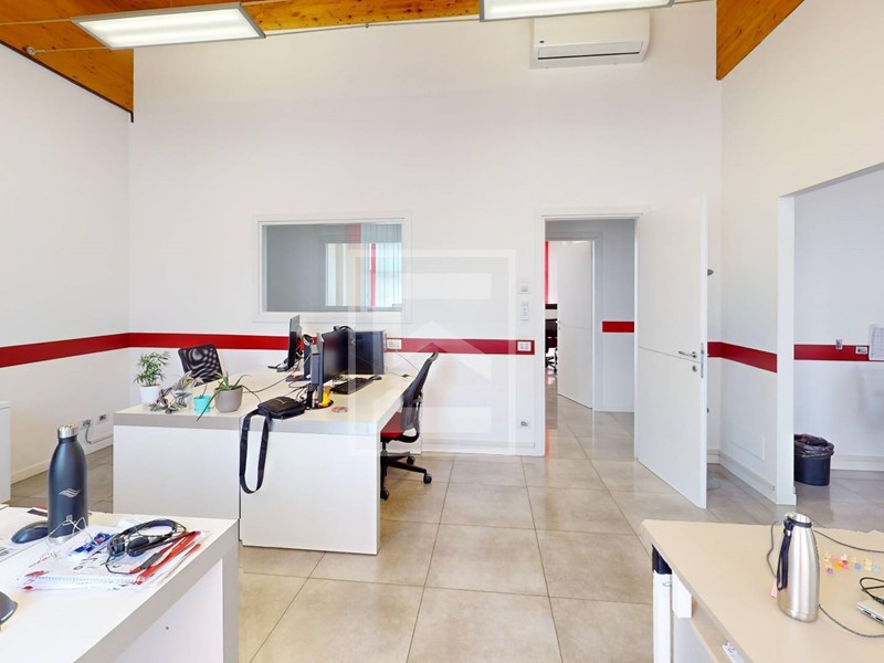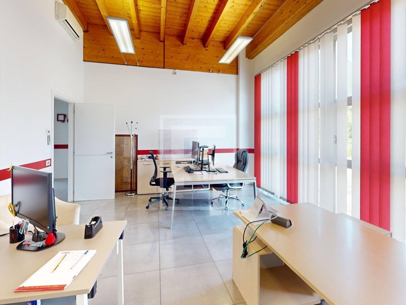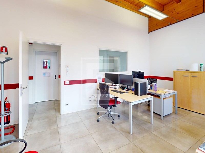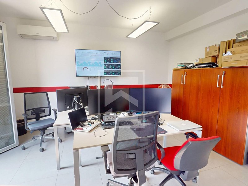 Linterno presenta una superficie ampia e funzionale, suddivisa da pareti in cartongesso facilmente rimodulabili. È presente un impianto fotovoltaico da 16 kW, riscaldamento a pavimento e climatizzazione caldo/freddo, impianto dallarme, sistema antincendio e gruppo di continuità (UPS) per garantire continuità operativa. Limpianto elettrico con cablaggio ethernet è installato a soffitto, soluzione ideale per eventuali modifiche alla disposizione interna.