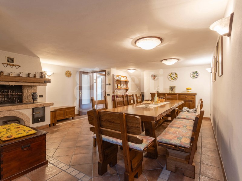 Una spaziosa taverna al piano interrato con caminetto a legna, perfetta per momenti conviviali