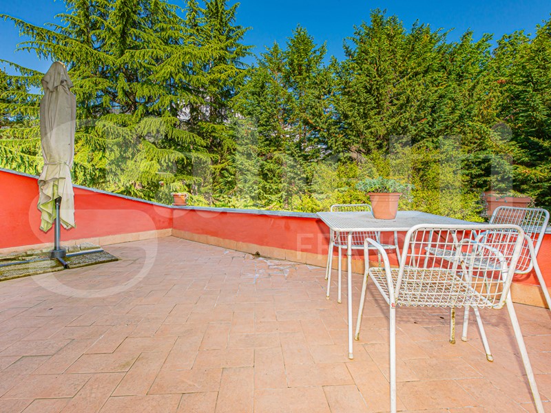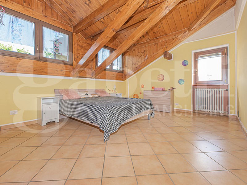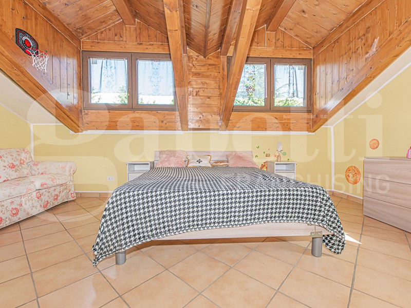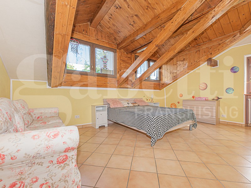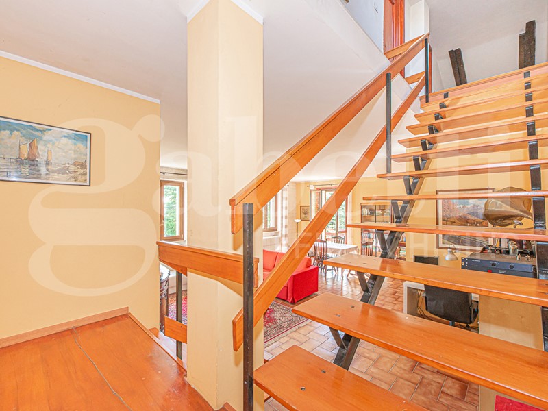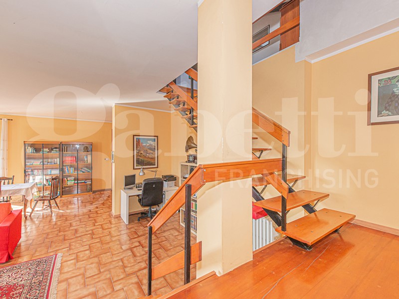 L'appartamento si sviluppa su due livelli, al primo ed ultimo piano, con una scala in legno che conduce al sottotetto rifinito. Le condizioni interne sono buone.