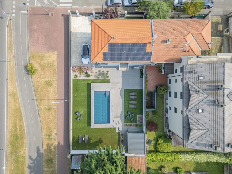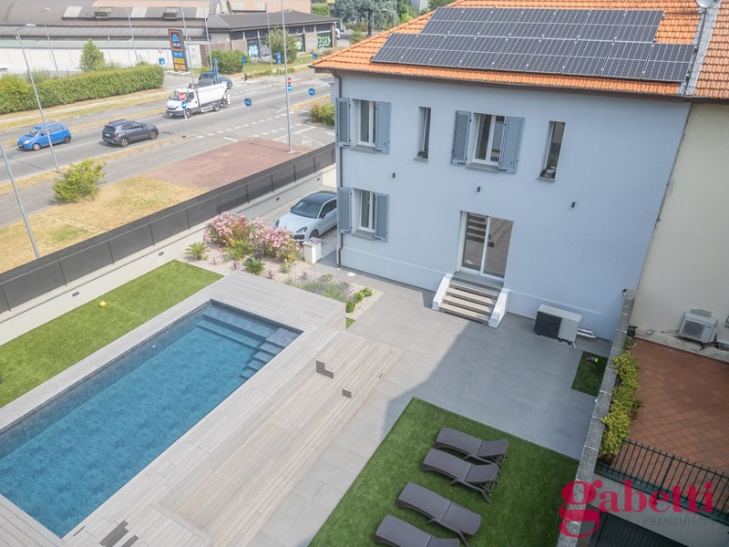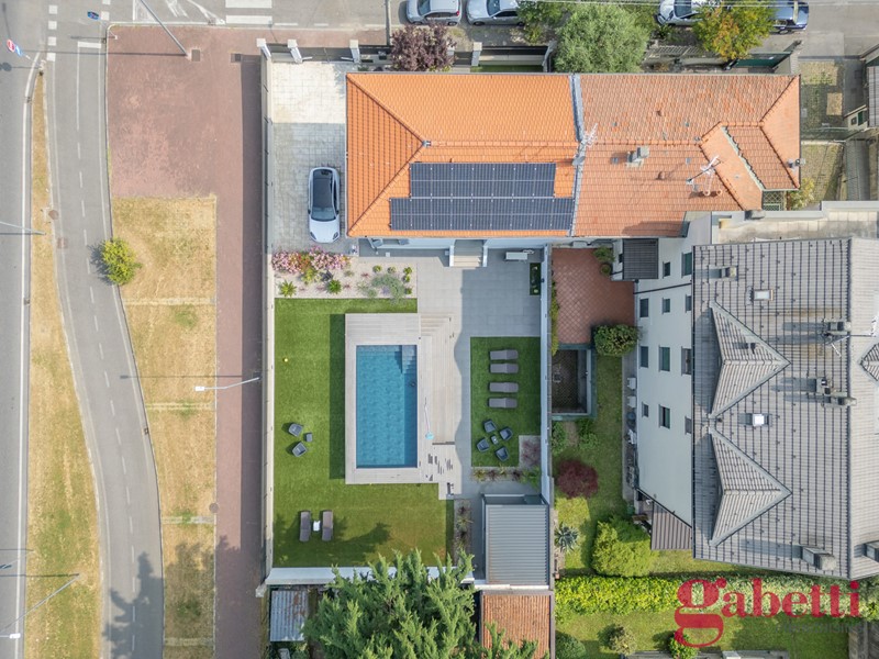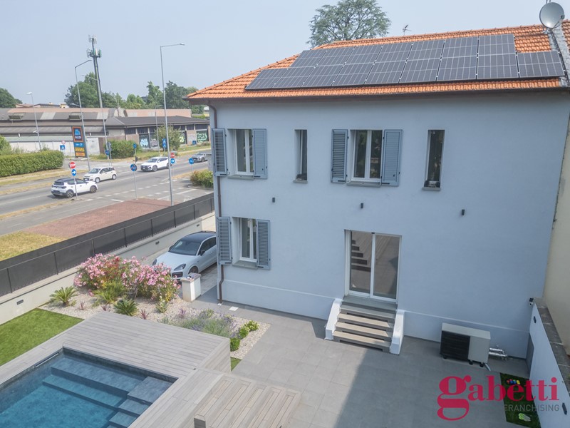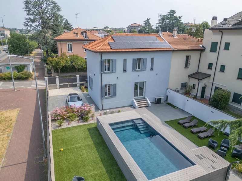 **Villa con Piscina in Vendita - Immersa nel Verde** Scopri questa splendida villa completamente ristrutturata nel 2023, situata in una posizione strategica a pochi passi da supermercati, farmacie, ristoranti e banche. Questa proprietà offre un perfetto equilibrio tra privacy e comodità, con aree ricreative e sportive nelle vicinanze e scuole di ogni grado facilmente raggiungibili. La villa si sviluppa su due piani oltre a un seminterrato caratterizzato da affascinanti volte in mattoncini, ideale per creare una sala hobby o un locale tecnico. La villa, è dotata di finiture di pregio e impianti moderni, inclusi un sistema fotovoltaico e una batteria di accumulo. La piscina con copertura automatizzata e il giardino silenzioso di circa 500 mq e una pergola bioclimatica, offrono un angolo di relax immerso nel verde. Gli spazi interni sono ben distribuiti: al piano terra trovi un ingresso con porta blindata, un ampio salone doppio con cucina a vista e isola, oltre a un bagno di servizio. Al primo piano, tre camere da letto e due bagni con soffitti alti e travi a vista garantiscono comfort e stile. Non perdere l'opportunità di vivere in questa villa unica, perfettamente collegata al centro cittadino tramite mezzi pubblici e a pochi minuti dalla stazione FS. Con aria condizionata canalizzata, impianto antifurto di ultima generazione e ricarica per auto elettriche, questa proprietà è pronta ad accoglierti in un ambiente moderno e sicuro. Contattaci per maggiori informazioni e per prenotare una visita!
